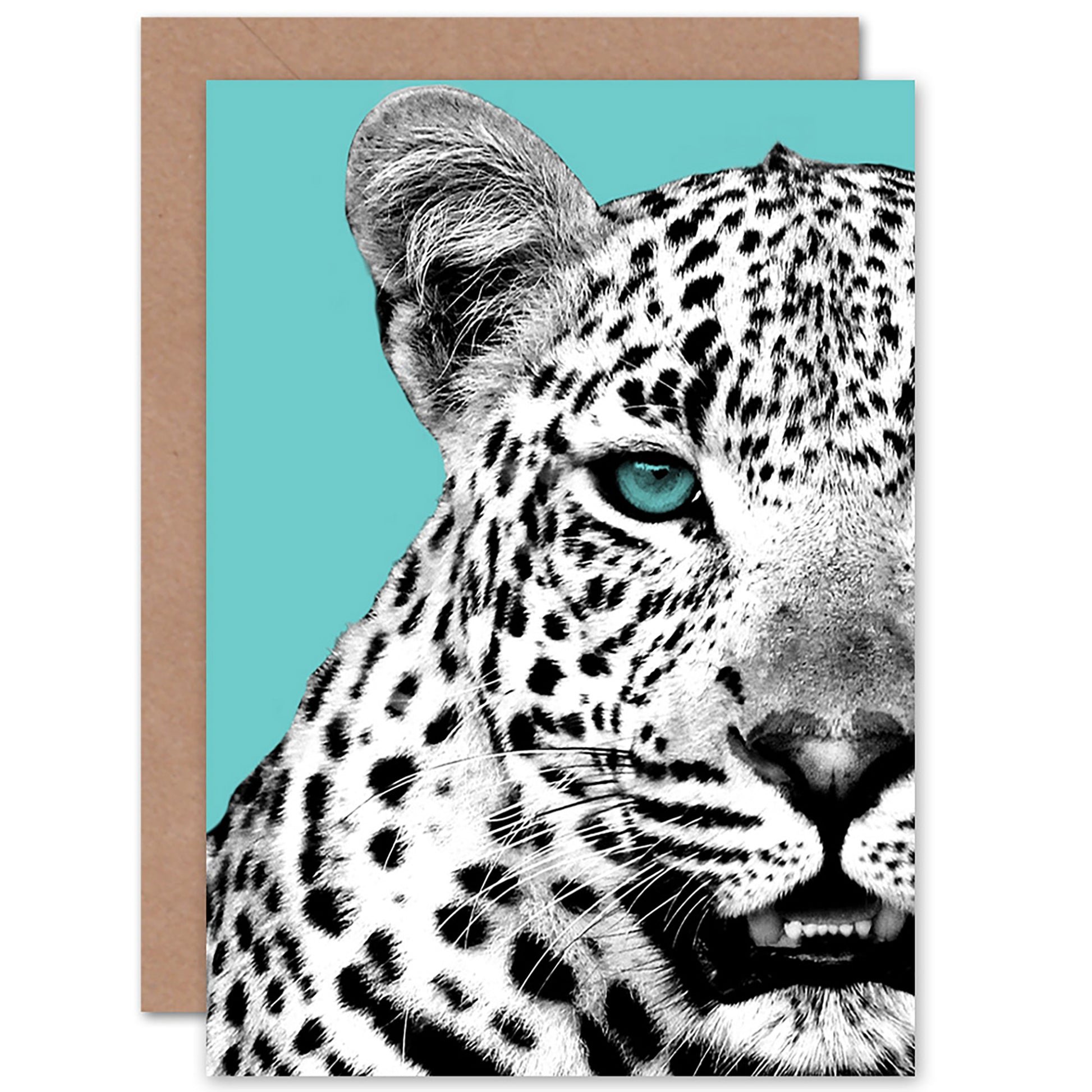 Leopard Head Close Up Photo Turquoise Animal Greetings Card