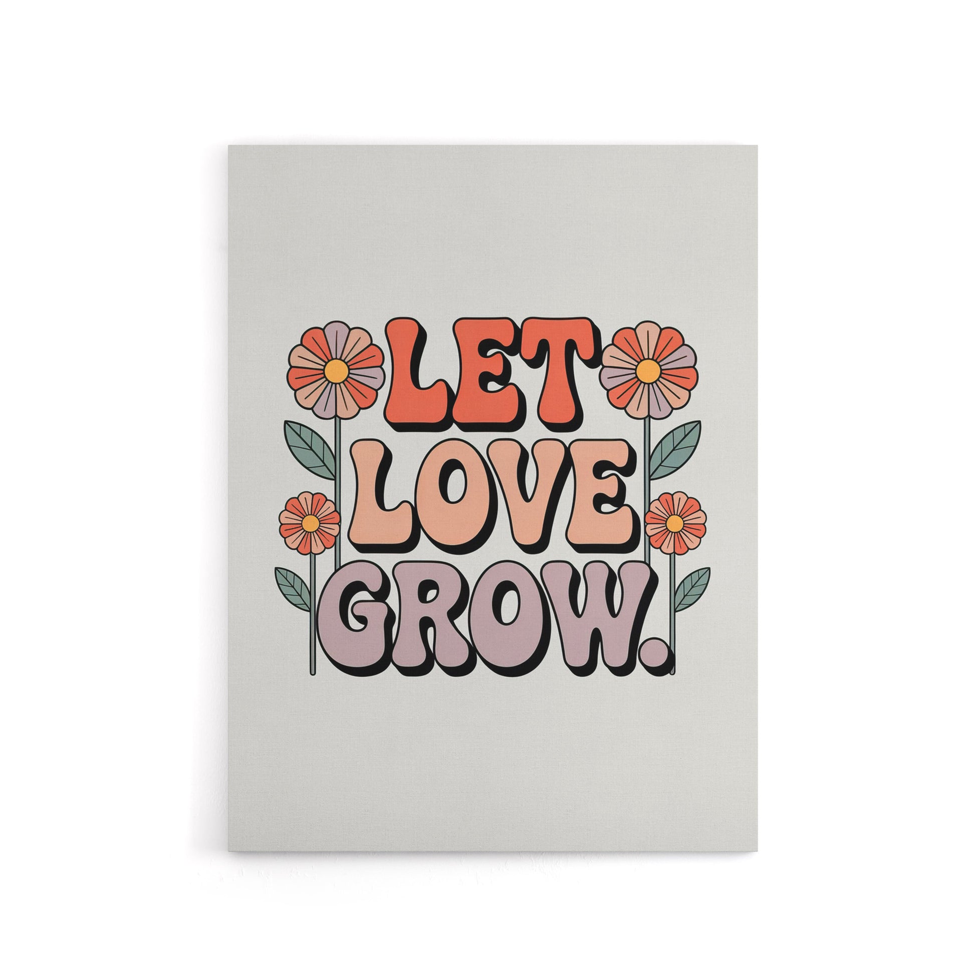 Let Love Grow Retro Hippie Floral Typography Canvas Wall Art Print