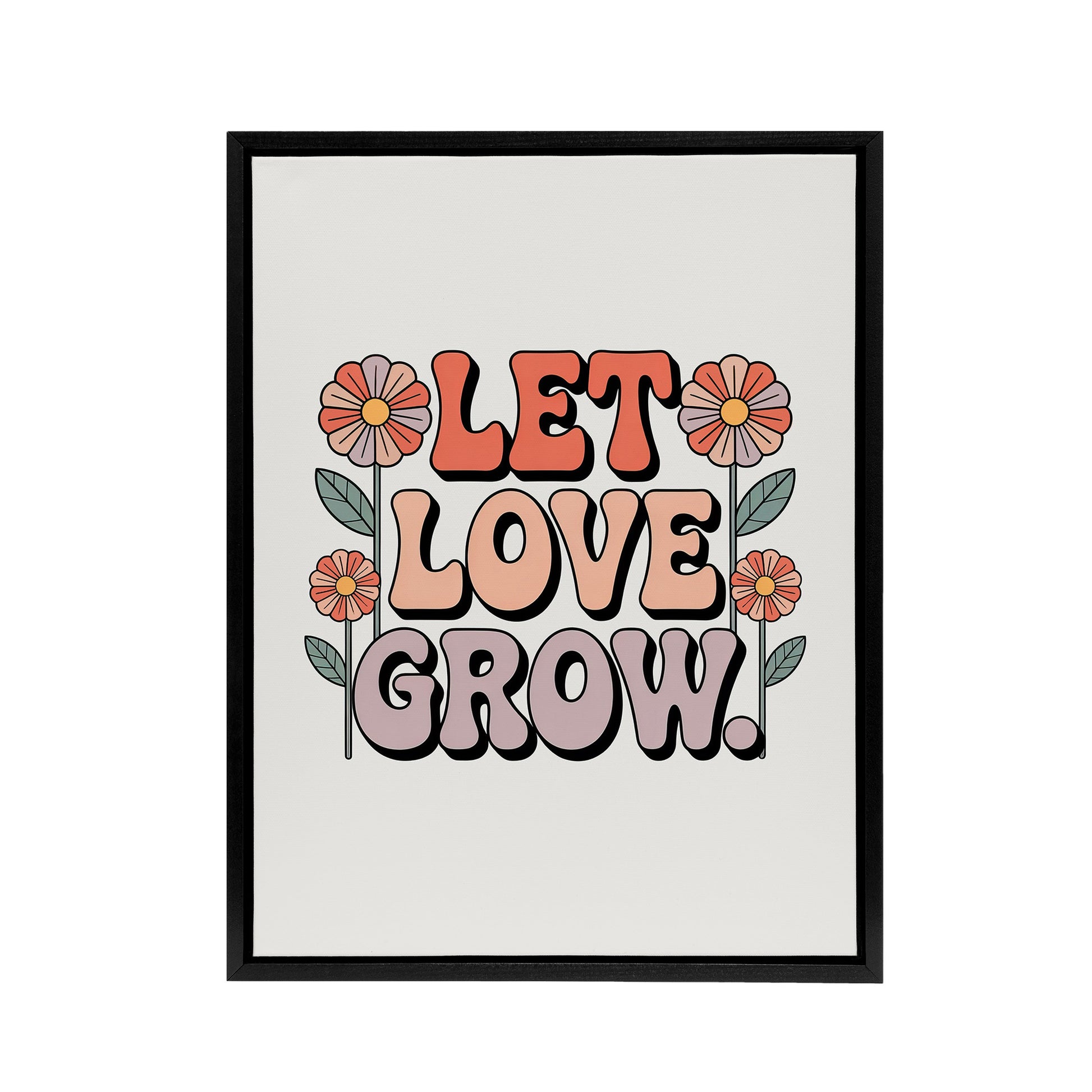 Let Love Grow Retro Hippie Floral Typography Framed Canvas Wall Art Print