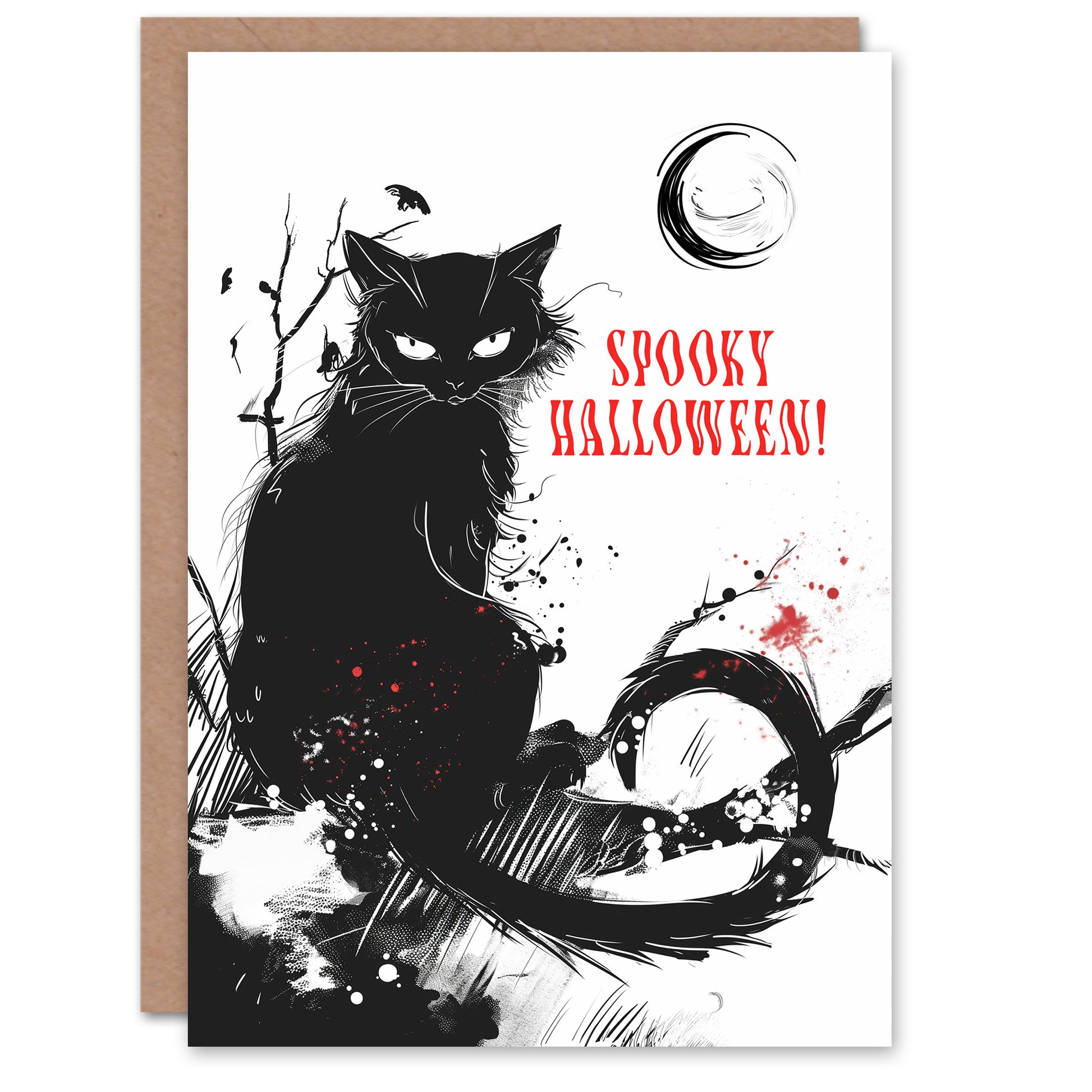 Lover Crescent Moon Spooky Bright Arty Halloween Card