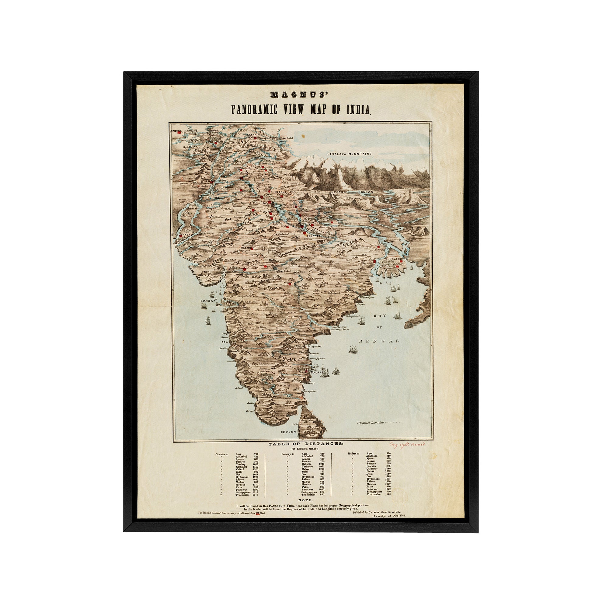 “Magnus 1857 Panoramic Map India Distances” comes to life as a Framed Canvas print crafted for ready-to-hang display. This Framed Canvas print reproduces a historic map with intricate details and decorative cartography. Printed on premium canvas and ready to hang, it’s perfect wall art for studies, libraries, or offices. Ideal for map collectors, historians, or travel enthusiasts, it brings cultural heritage and conversation value into your home decor. Rare antique map revealing colonial geography, educational artwork perfect for historians or travel lovers.