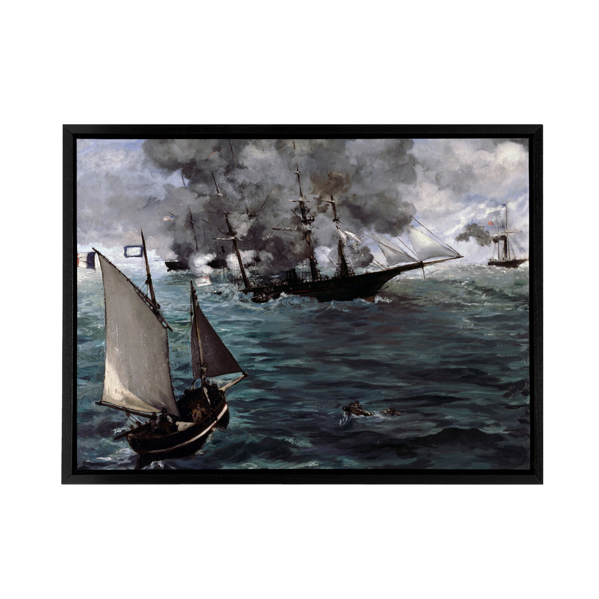 Manet USS Kearsarge and CSS Alabama Battle Black Framed Canvas Art Print