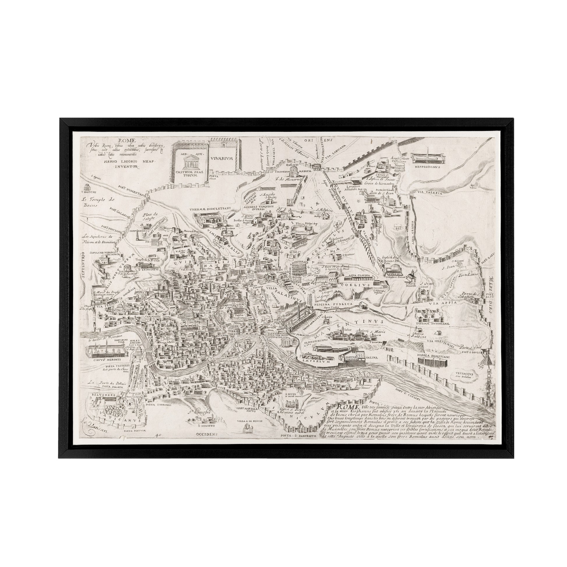 Map Ligorio Ancient Rome Plan Black Framed Canvas Wall Art Print