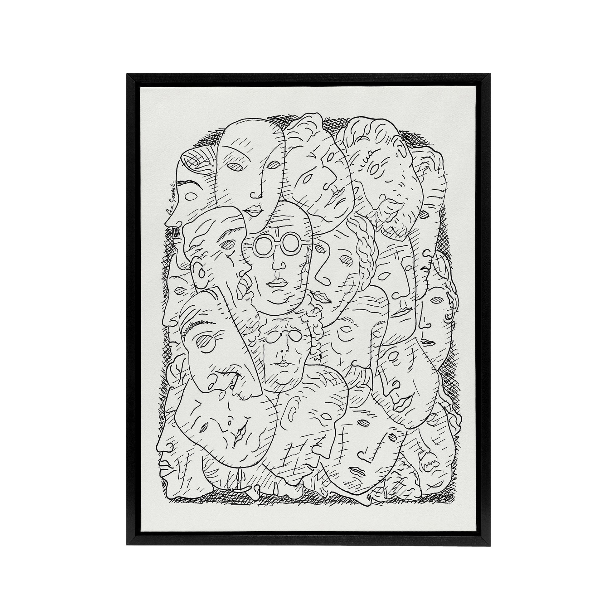 Maskers Masks Black And White Drawing Gestel Black Framed Canvas Wall Art