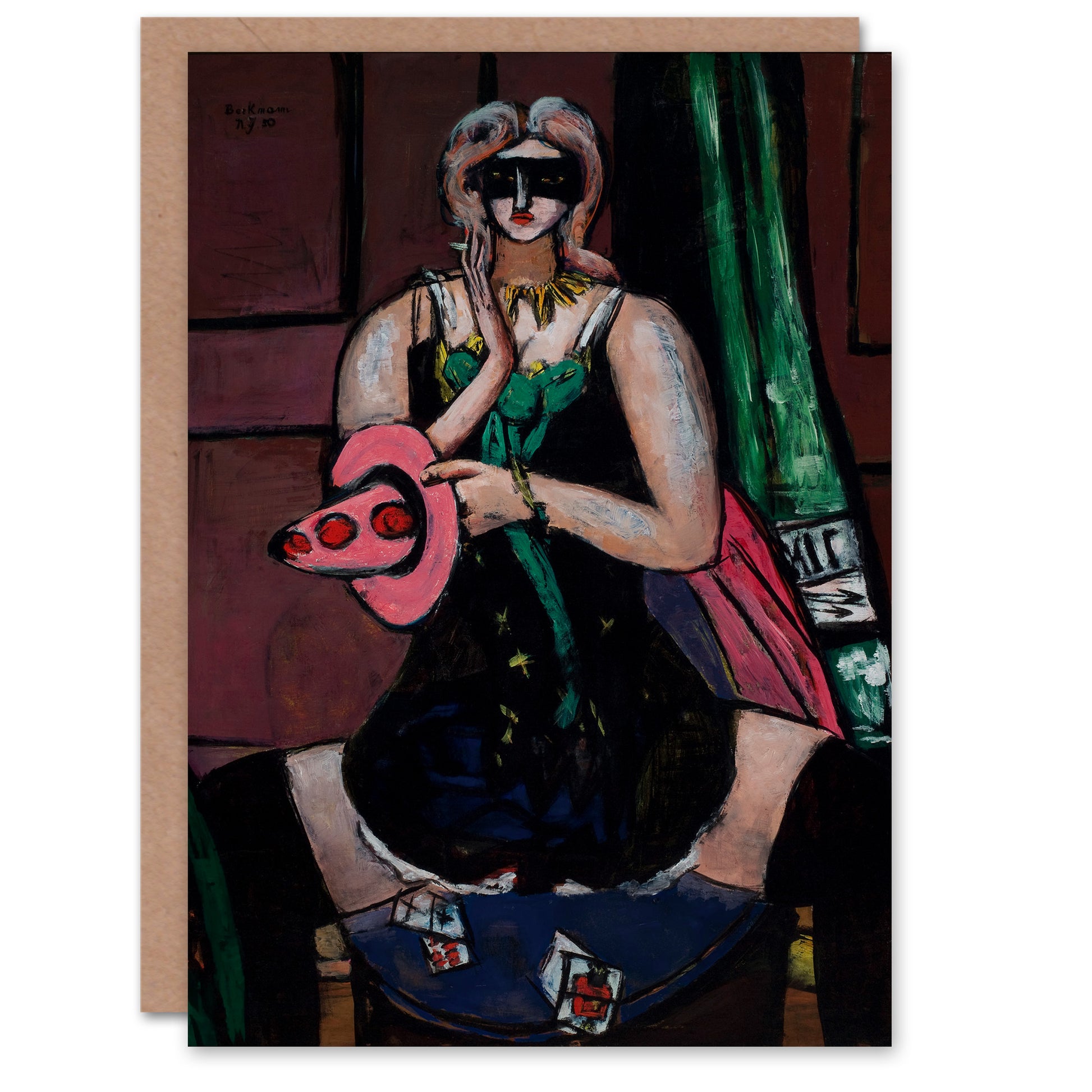 Max Beckmann Art Card Carnival Mask Green Violet and Pink