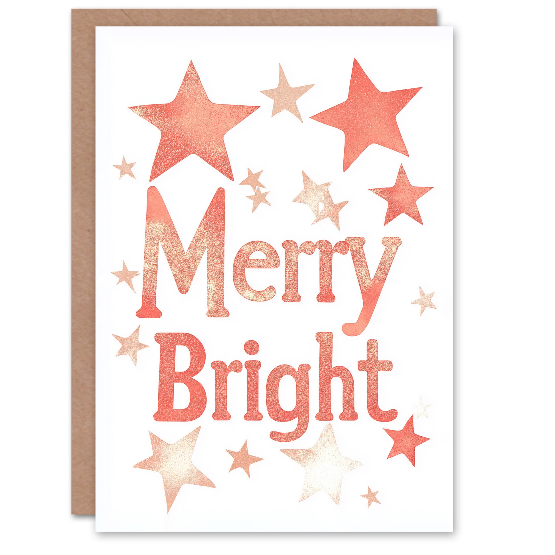 Merry Bright Soft Pink Stars Bright Modern Christmas Card