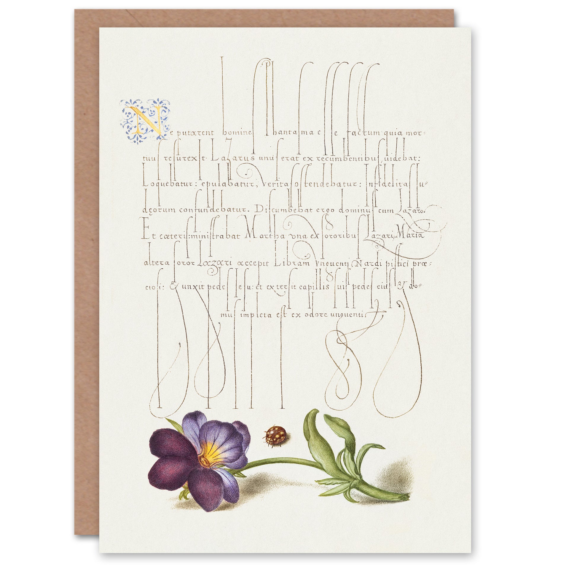 Model Book of Calligraphy Art Card Ladybird and Wild Pansy