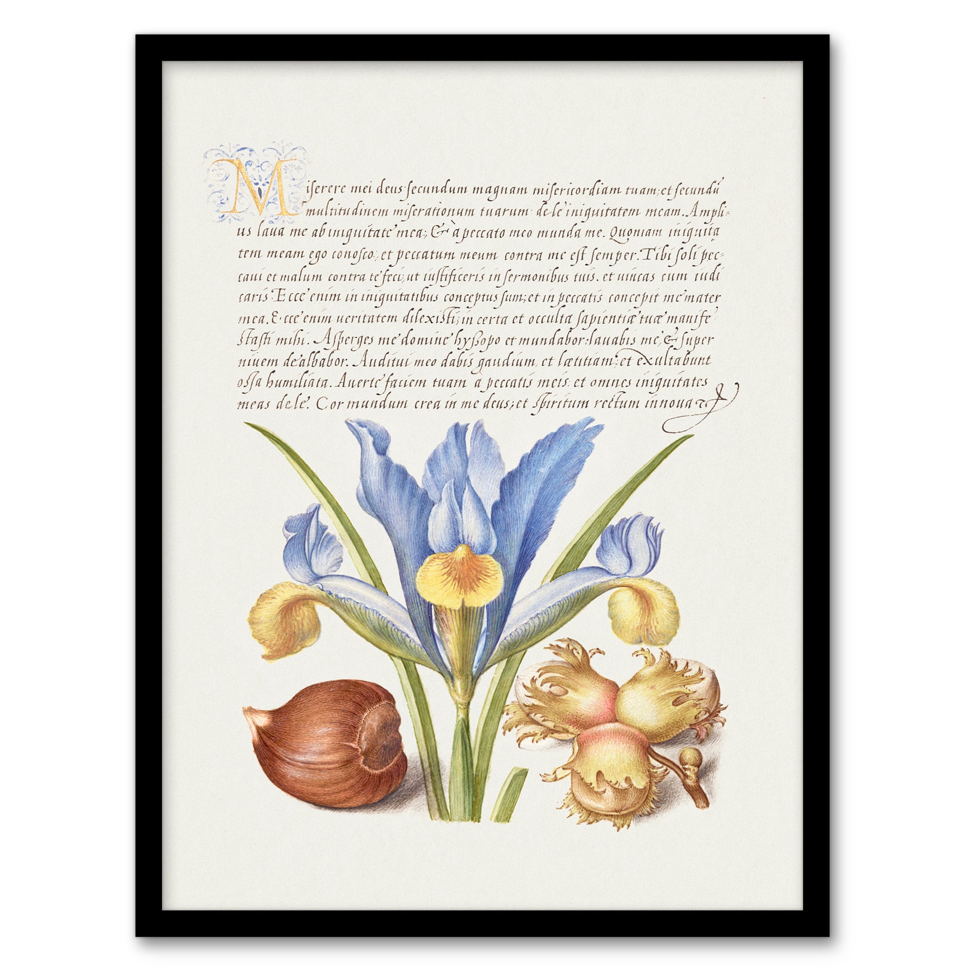 Model Book of Calligraphy Framed Wall Art Iris Flower and Hazelnut Home Décor