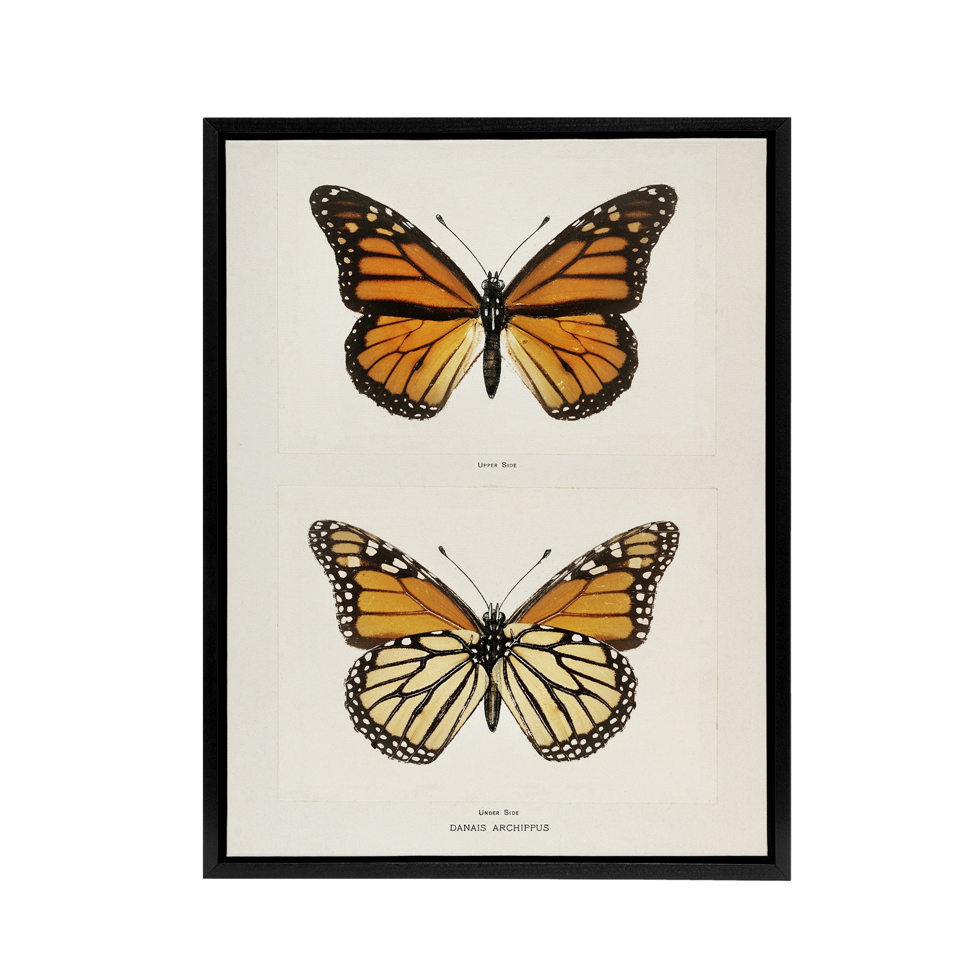 Monarch Butterfly Vintage Illustration Denton Framed Canvas Wall Art Print