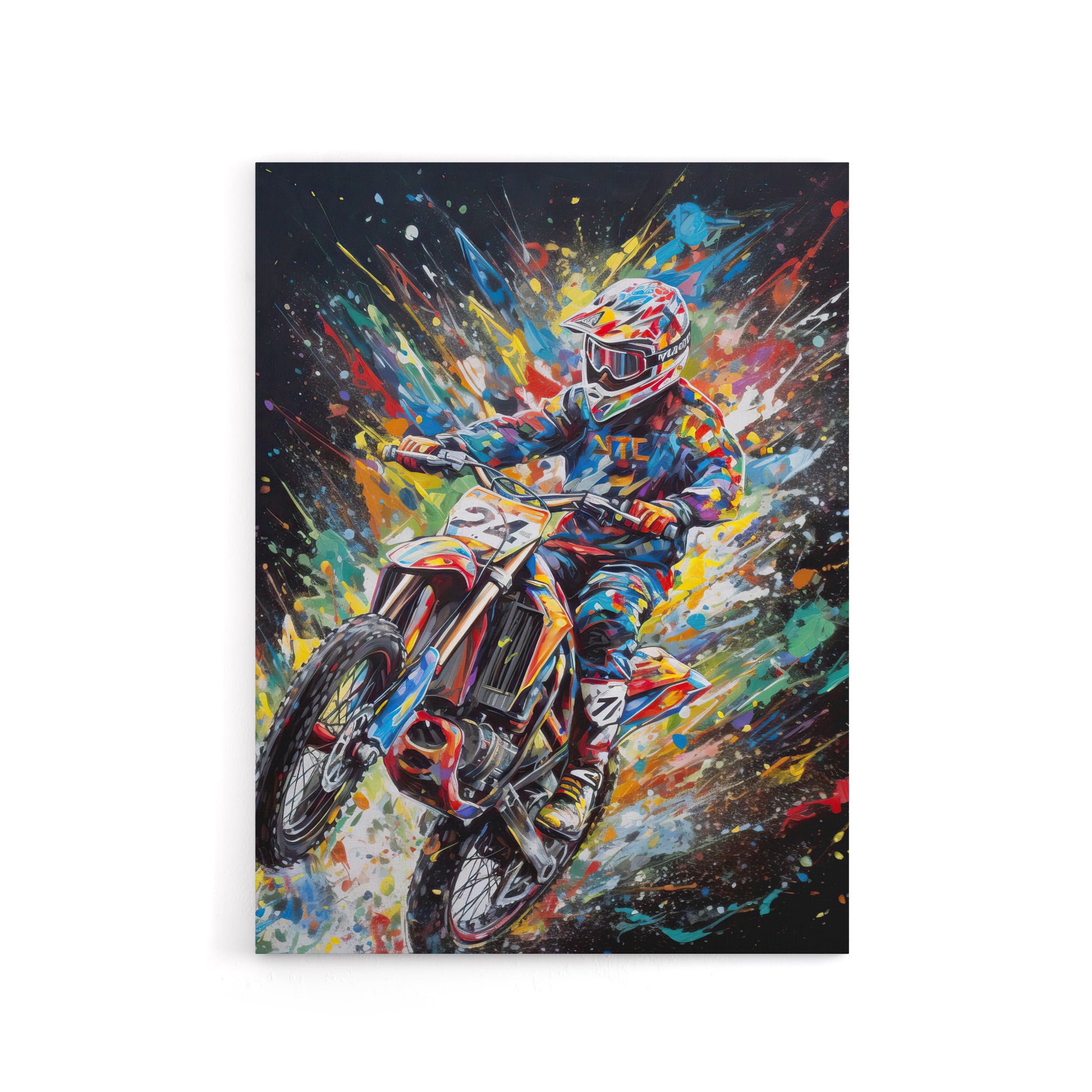 Motorcycle Motocross Rider Colourful Canvas Wall Art Print