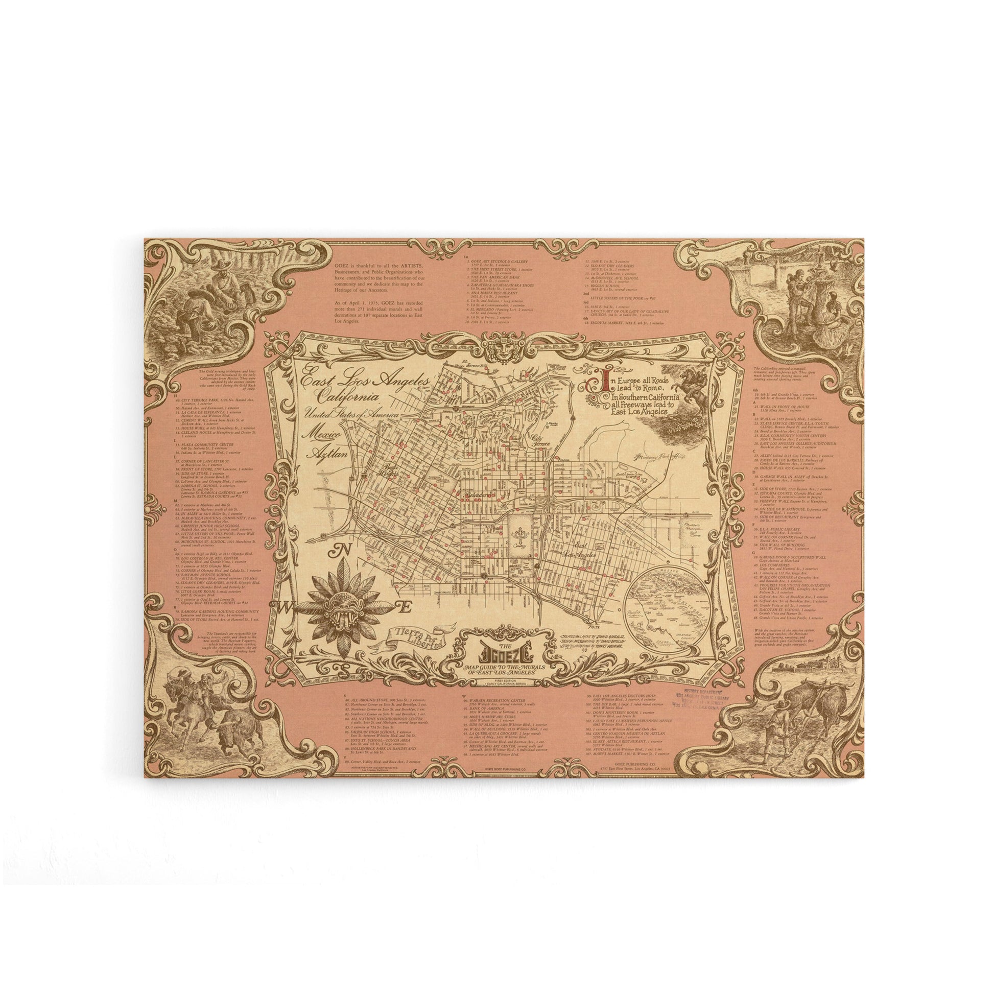 Celebrate Chicano heritage with this wrapped canvas print of the Goez map guide to East Los Angeles murals (1975). A rare cultural artifact, it highlights the community's art history and pride. Perfect for collectors of urban art, cultural history, or vintage maps, this ready-to-hang canvas makes a distinctive wall feature for homes, offices, or studios. Colourful cultural street art print, vibrant decor for studios, cafes, or creative homes.