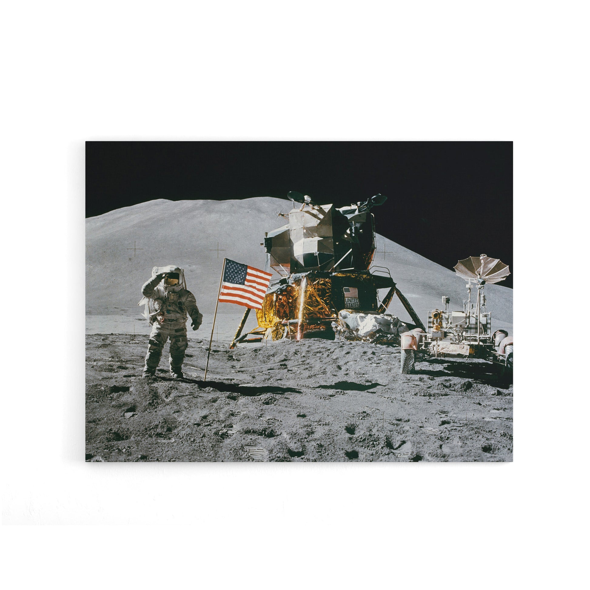 Nasa Space Apollo 15 Mission US Flag On Moon Canvas Wall Art Print
