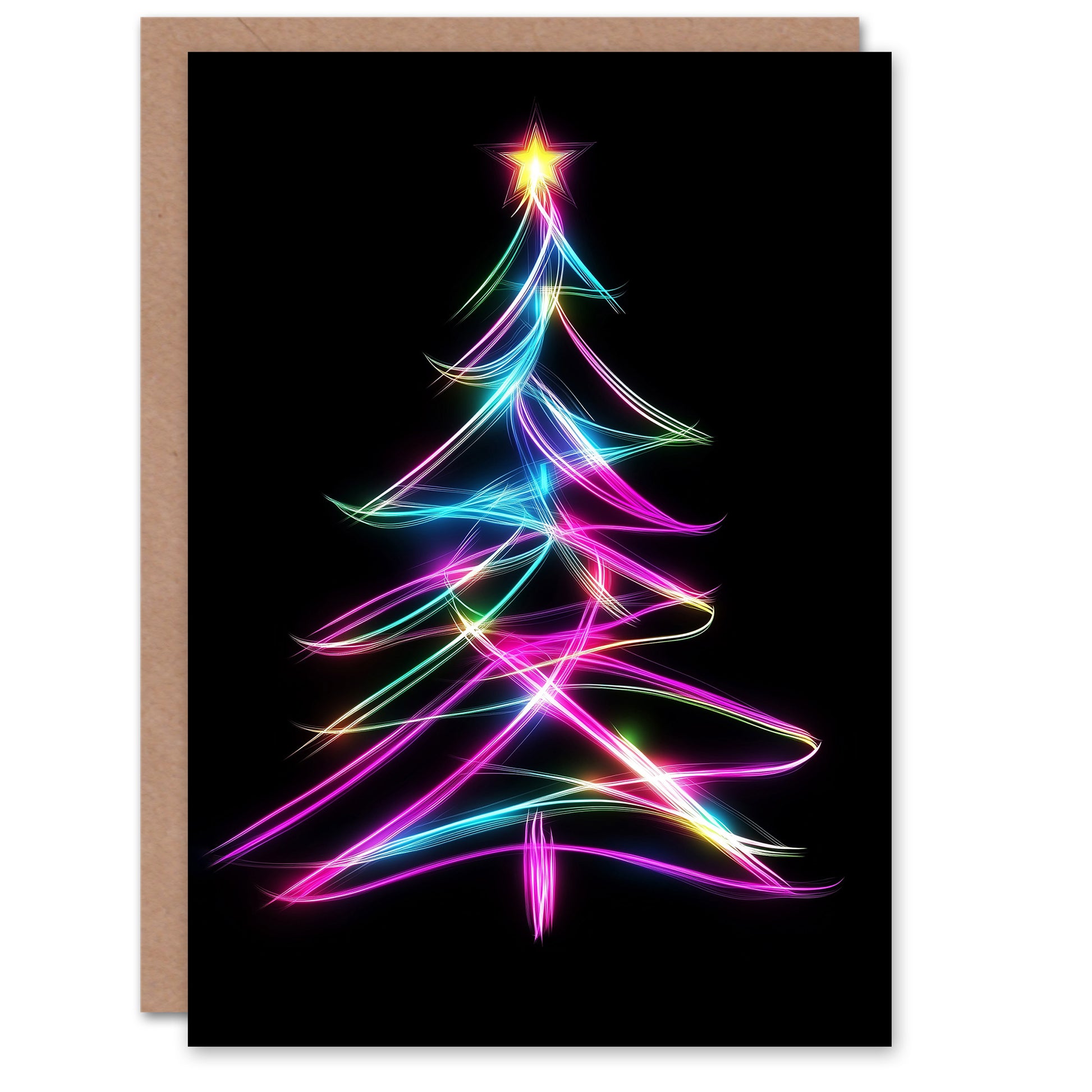Neon on Black Colourful Tree Light Painting Christmas Card