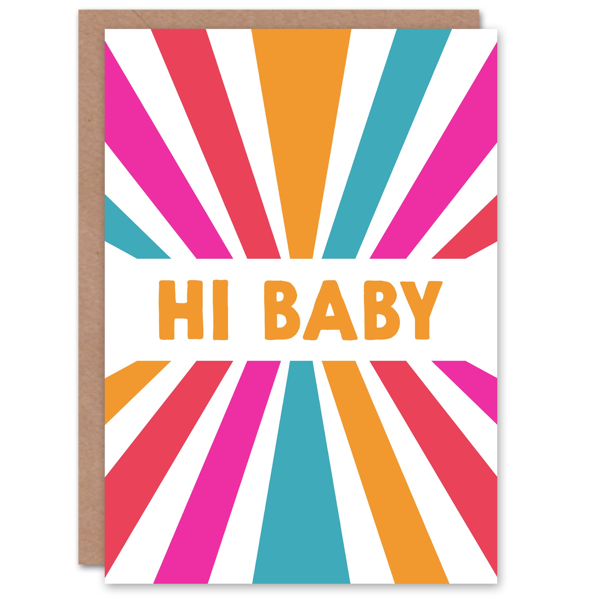 New Baby Card Hi Baby Bright Groovy Retro Stripe Design