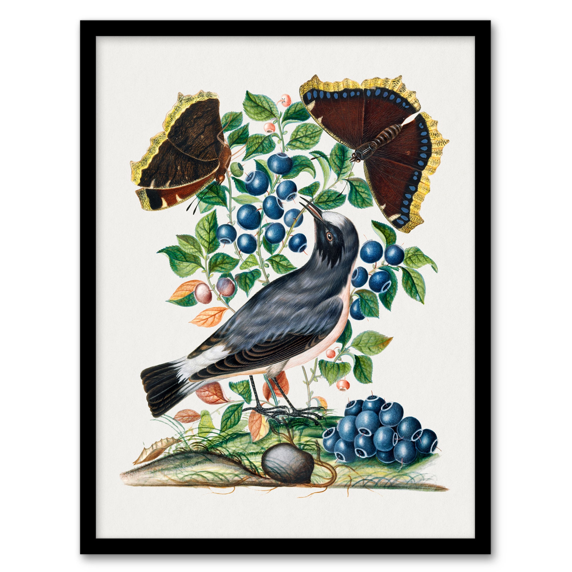 Northern Wheatear and Mourning Cloak Bolton Framed Wall Art Print