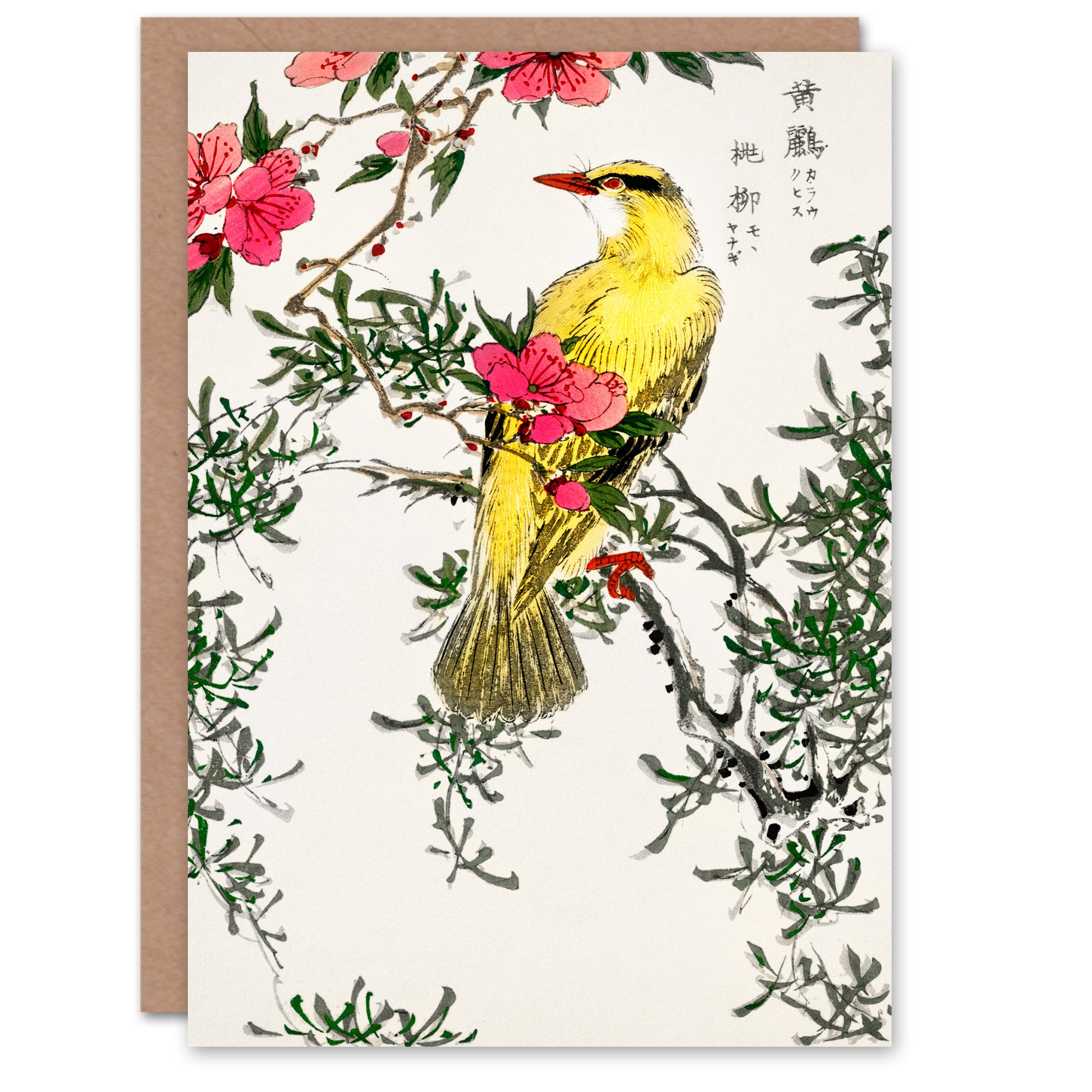 Numata Kashu Bush Warbler and Drooping Peach Tree Greetings Card