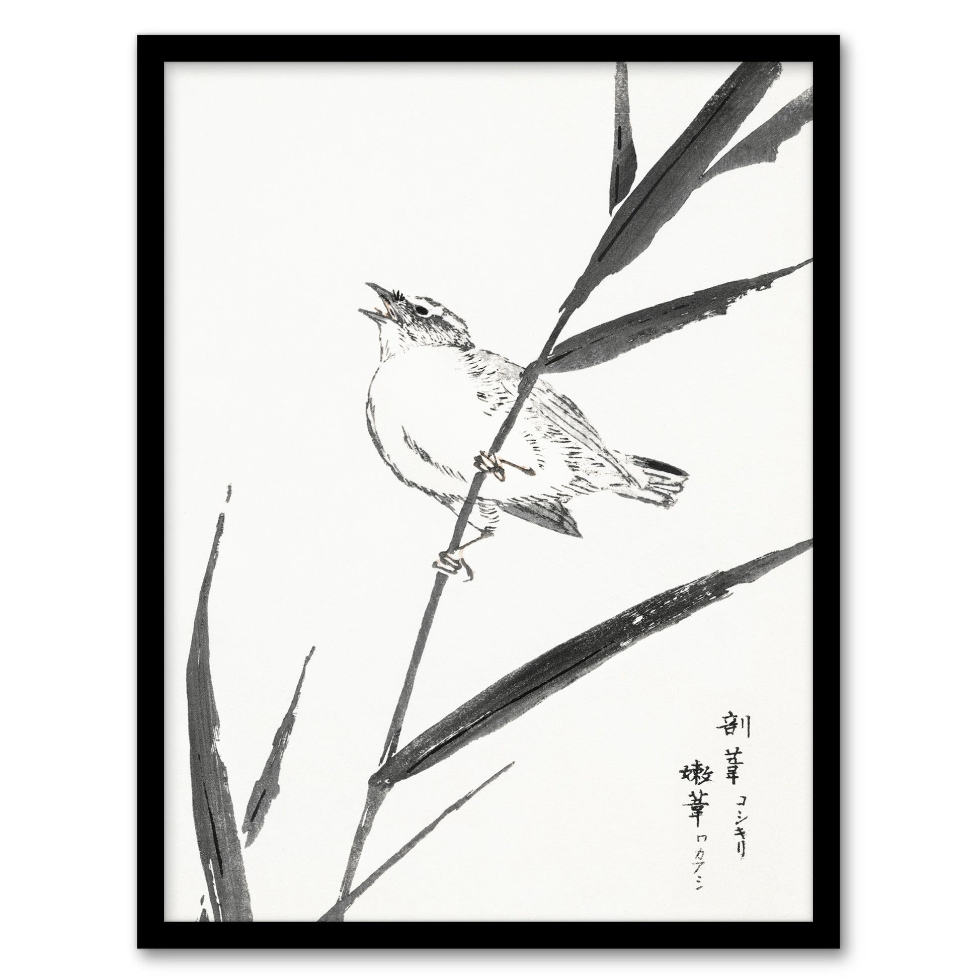 Numata Kashu Framed Wall Art Print Reed Bunting and Reed Japanese Home Décor