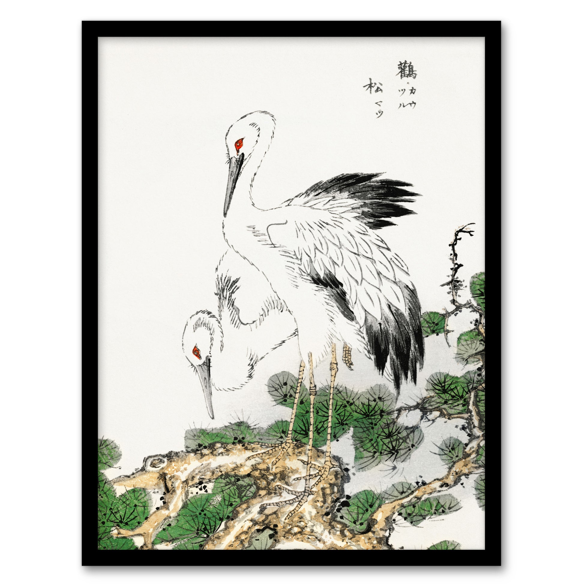 Numata Kashu Framed Wall Art Print Stork and Pine Tree Japanese Home Décor