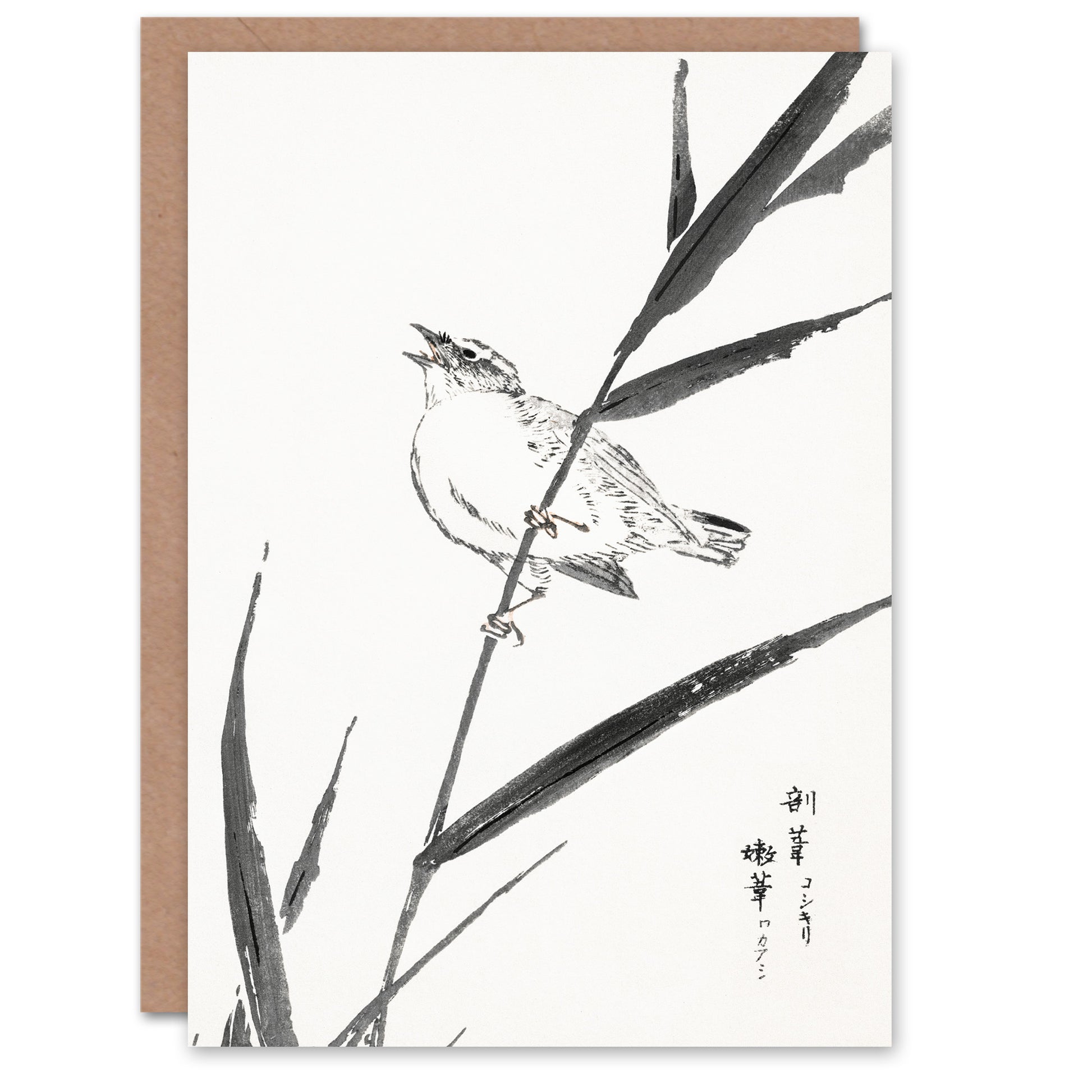 Numata Kashu Reed Bunting and Reed Japanese Greetings Card