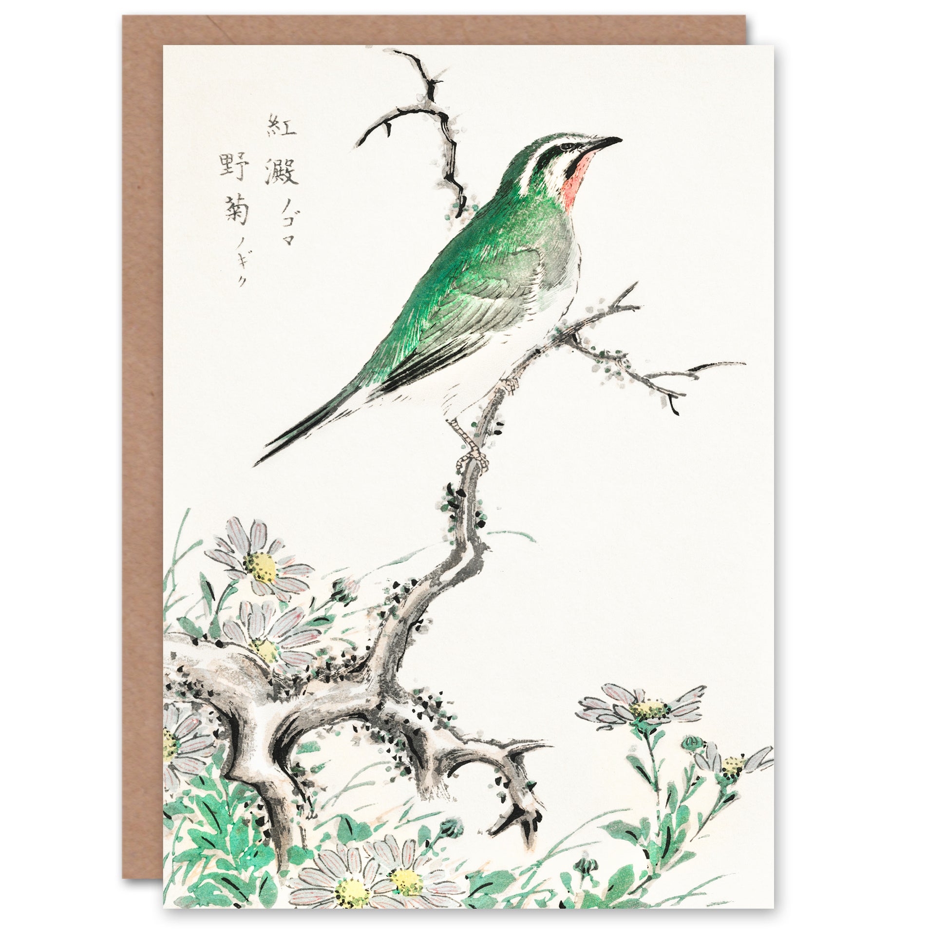 Numata Kashu Ruby Throat Bird and Wild Camomile Greetings Card