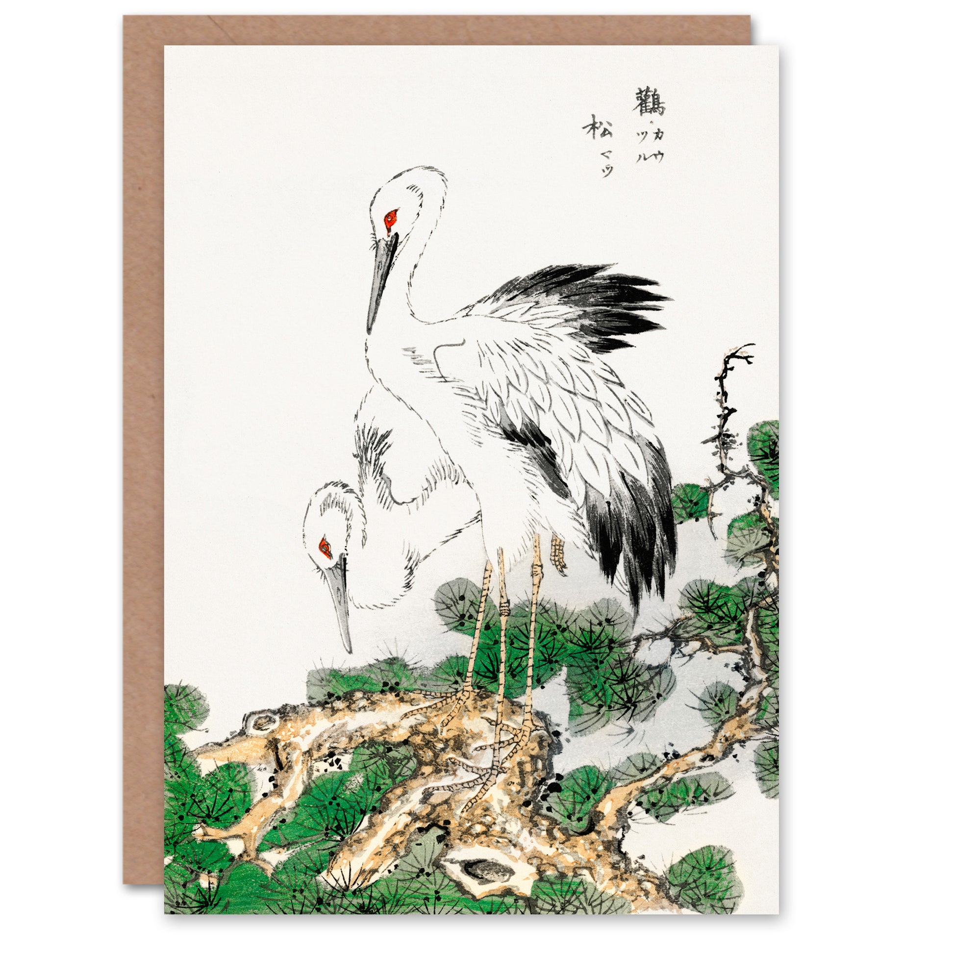 Numata Kashu Stork and Pine Tree Japanese Greetings Card