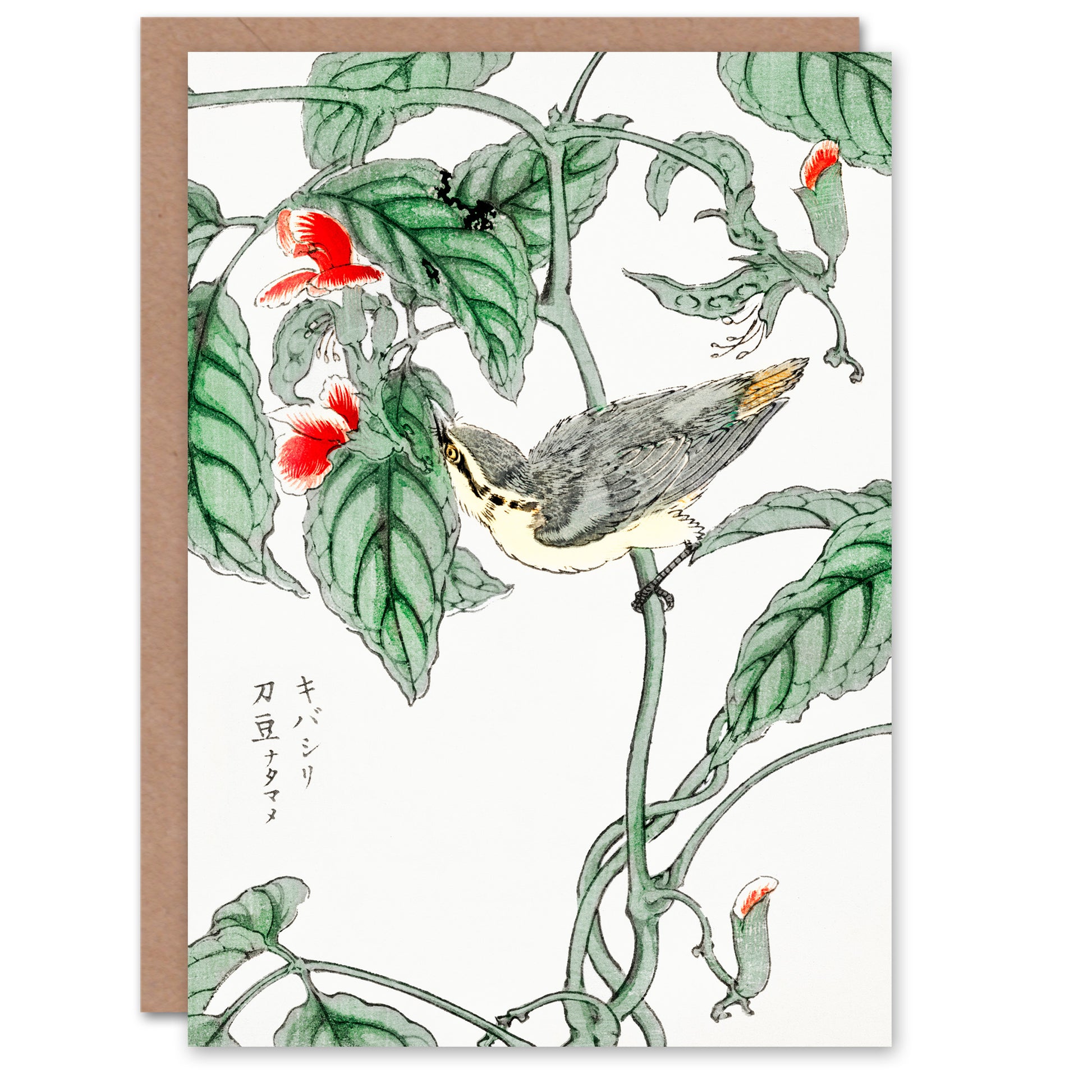 Numata Kashu Tree Creeper and Pea Japanese Greetings Card