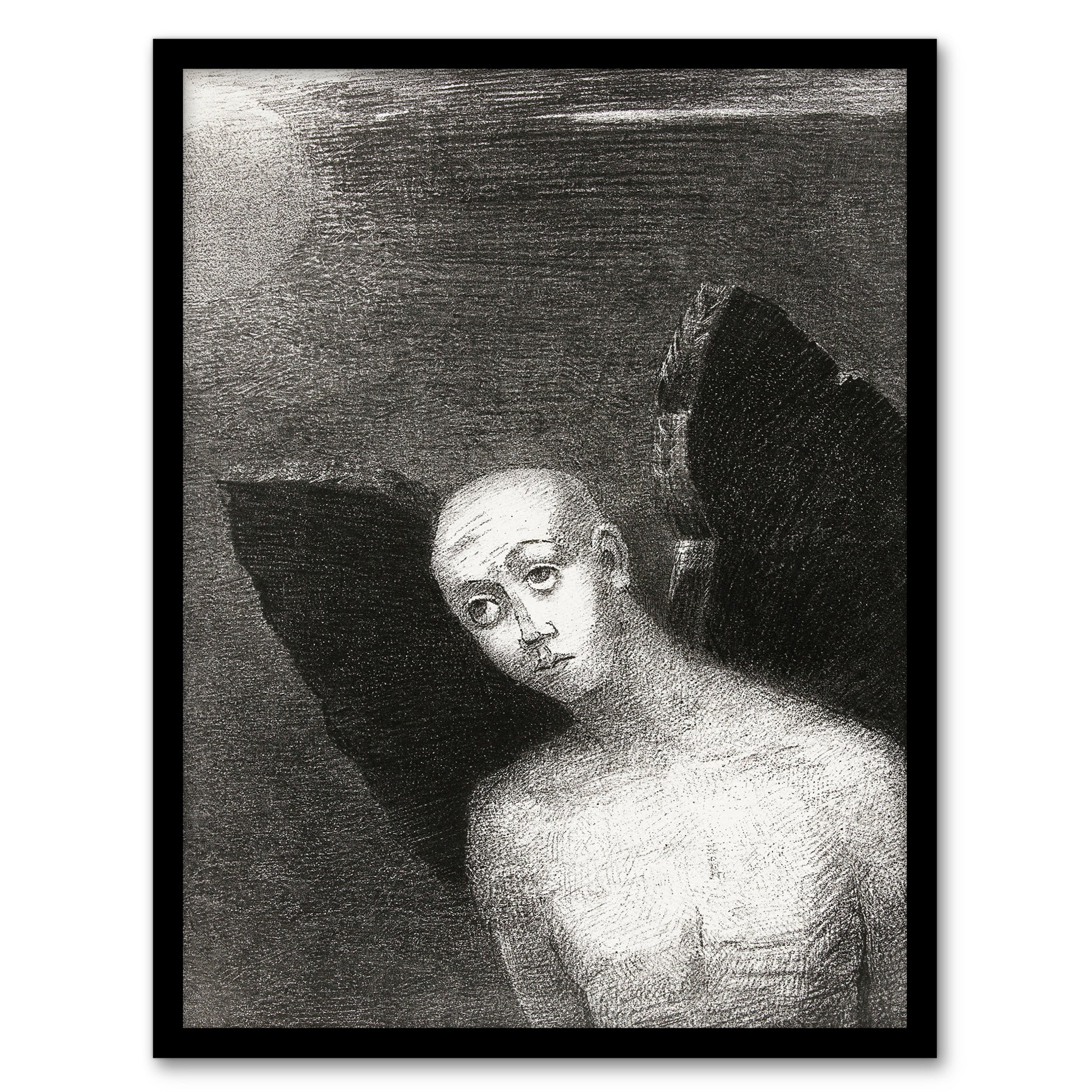 Odilon Redon Framed Wall Art Print Fallen Angel Spreads Black Wings Home Décor
