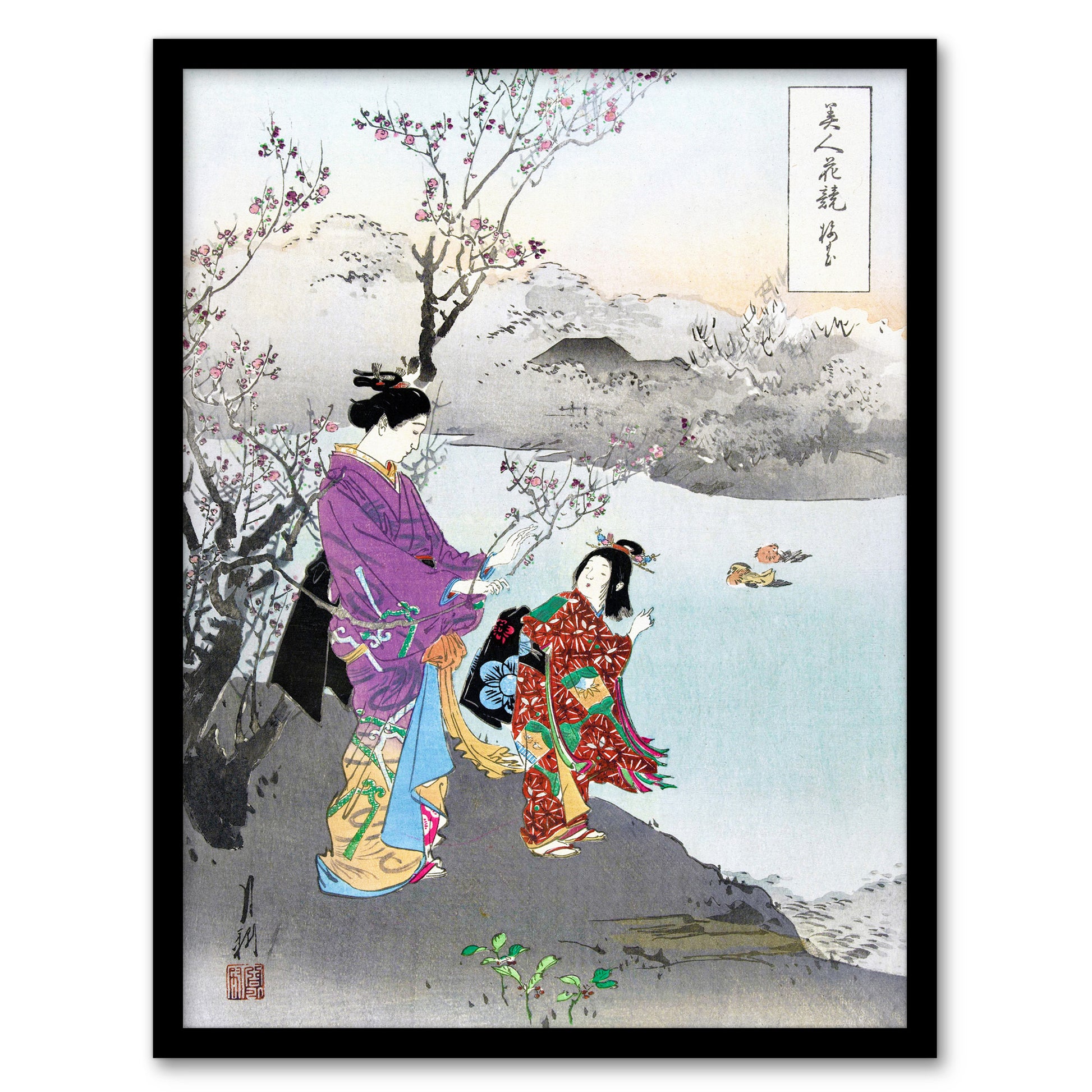 Ogata Gekko Framed Wall Art Print Woman Admiring The Plum Blossom Home Décor