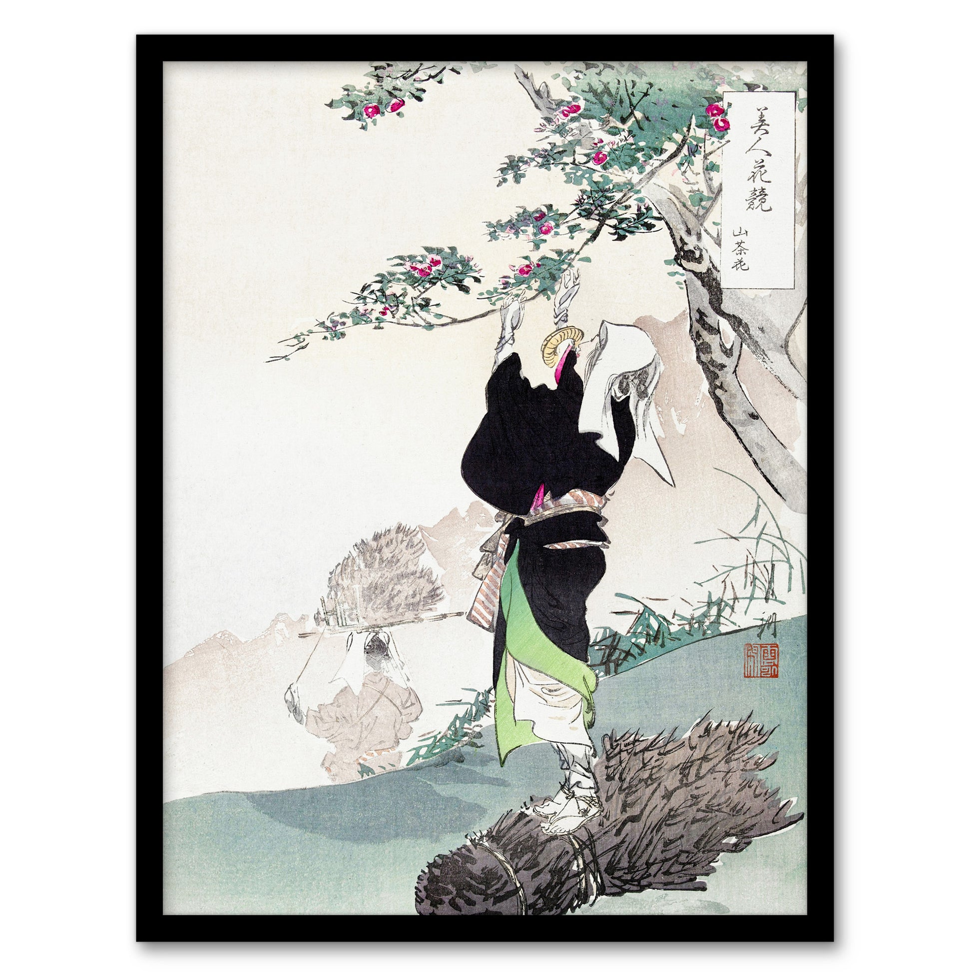 Ogata Gekko Framed Wall Art Print Woman Picking Mountain Cherry Home Décor