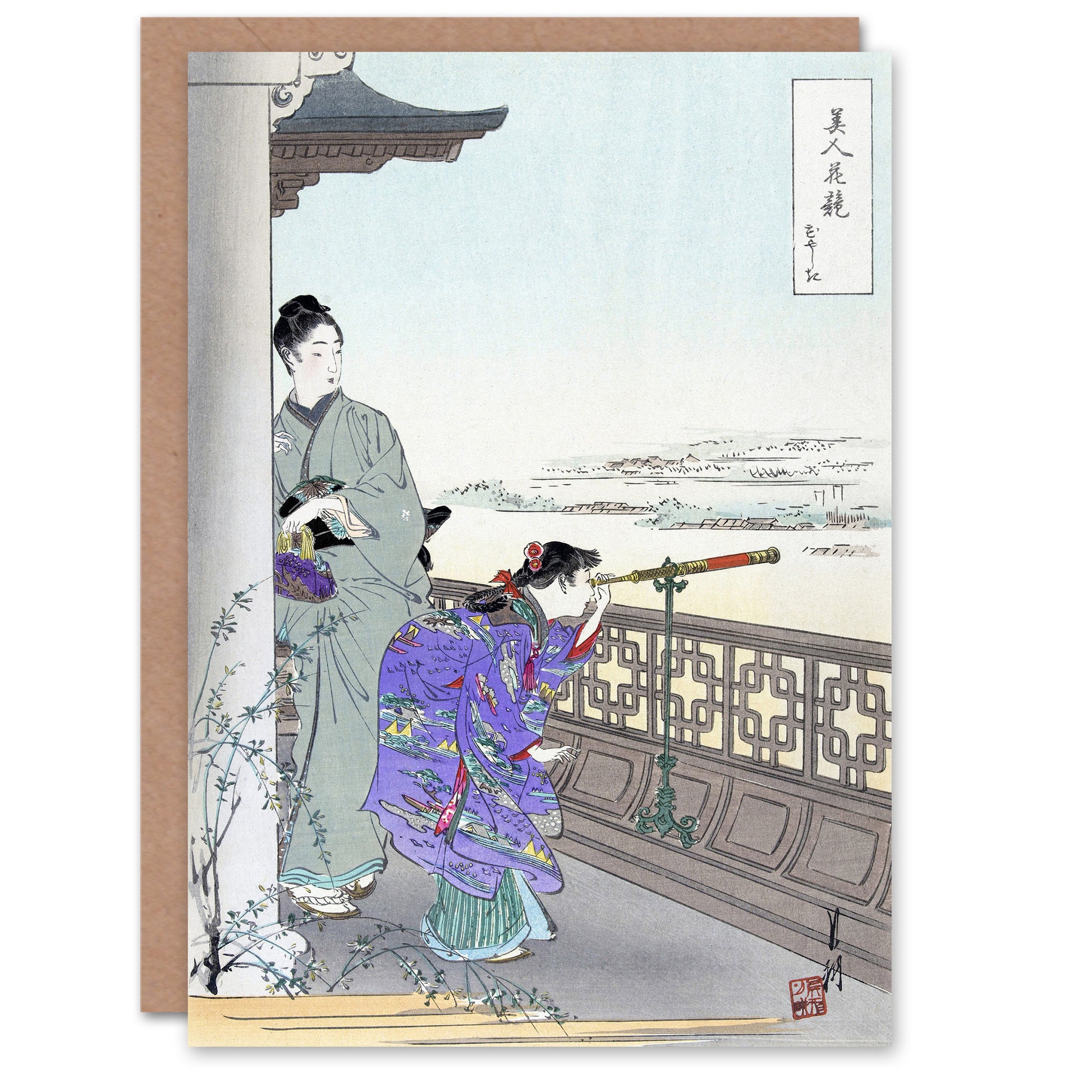 Ogata Gekko Japanese Beauties and Flowers Series Binoculars Greetings Card