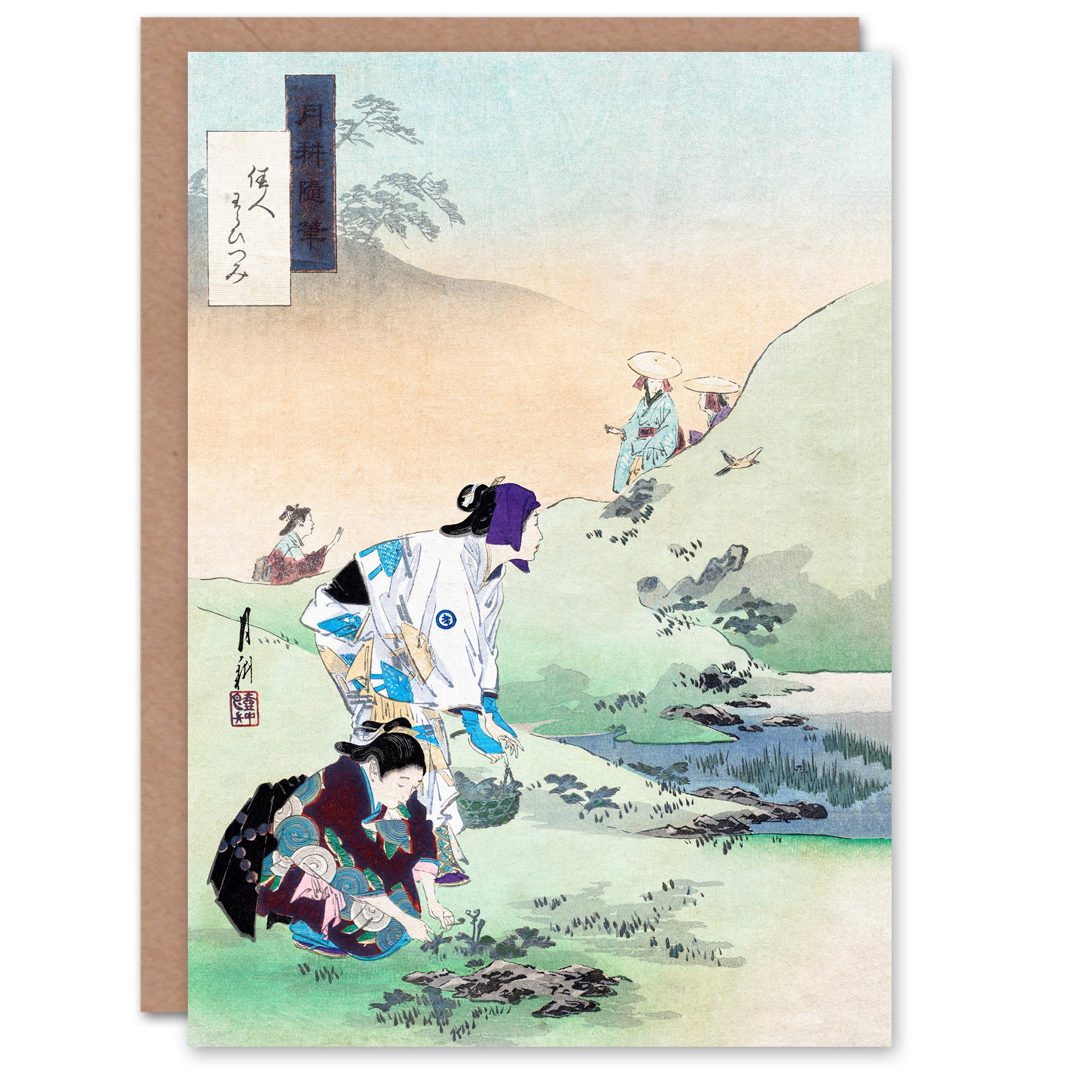 Ogata Gekko Japanese Beauties Harvesting Bracken Greetings Card