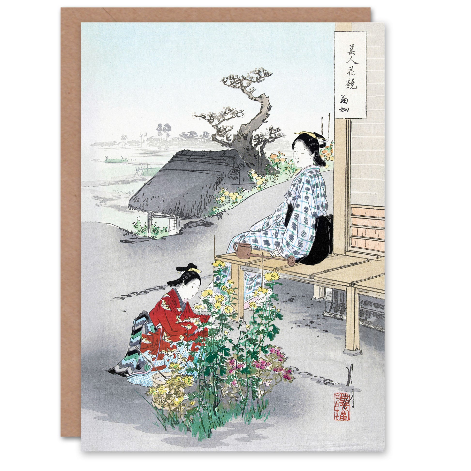 Ogata Gekko Japanese Caring For The Chrysanthemums Greetings Card