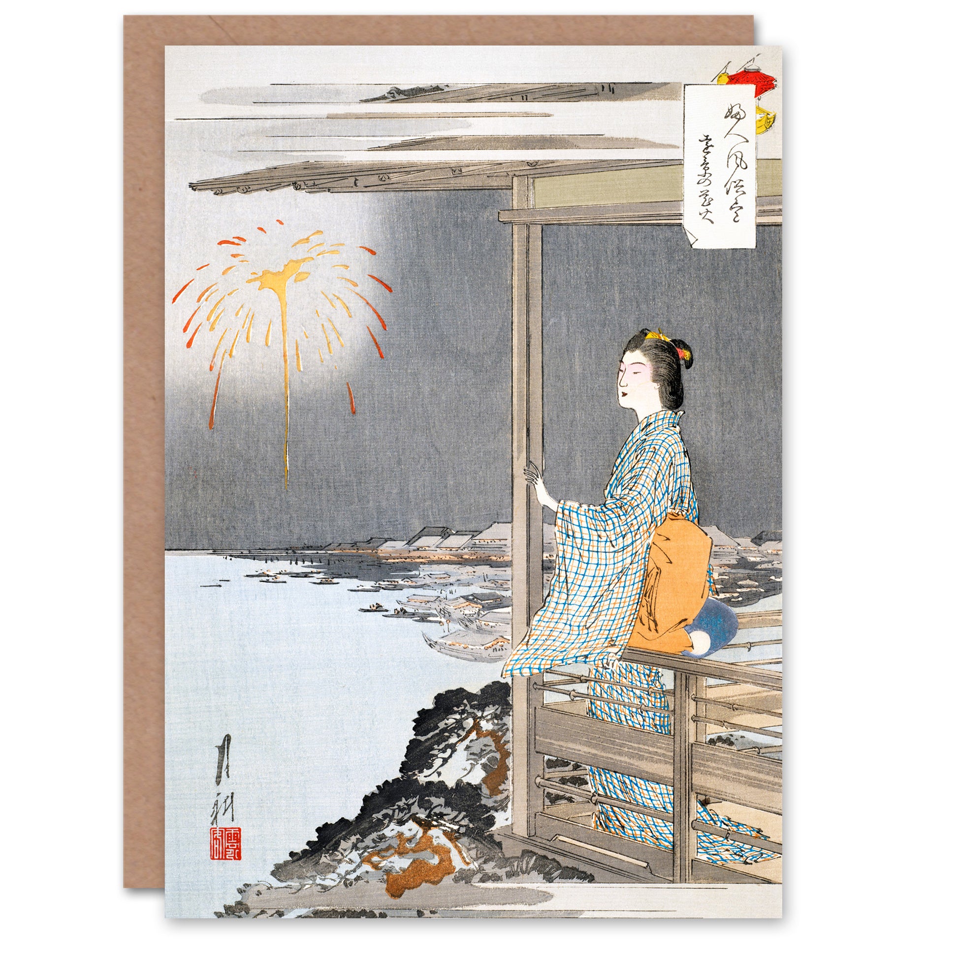 Ogata Gekko Japanese Woman Watching Fireworks Greetings Card