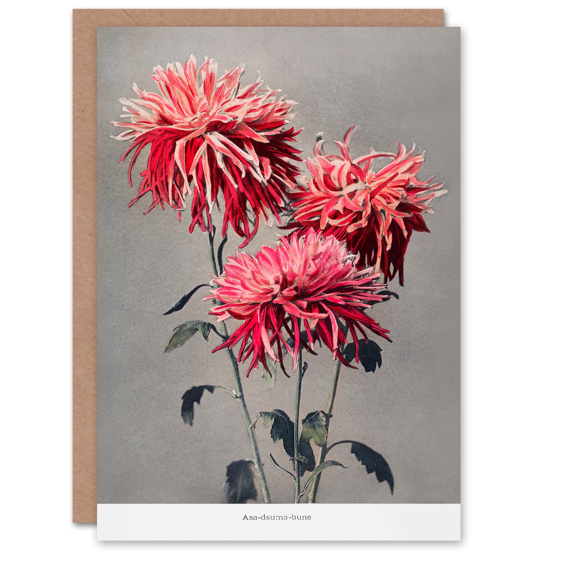Ogawa Kazumasa Japanese Pink Chrysanthemum Flowers Greetings Card