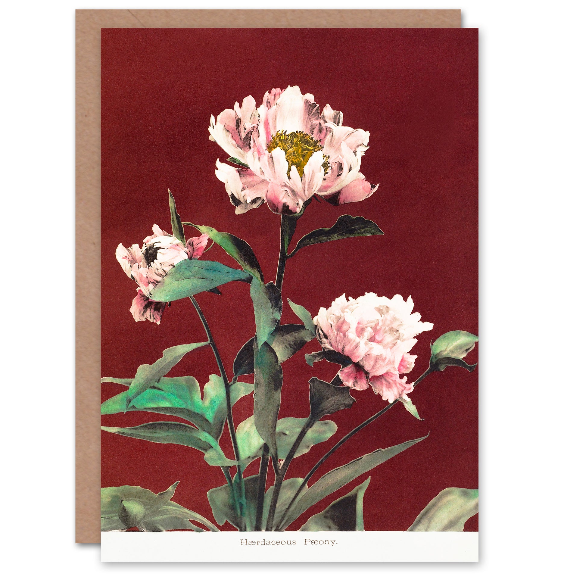 Ogawa Kazumasa Japanese Pink Herbaceous Peony Flower Greetings Card