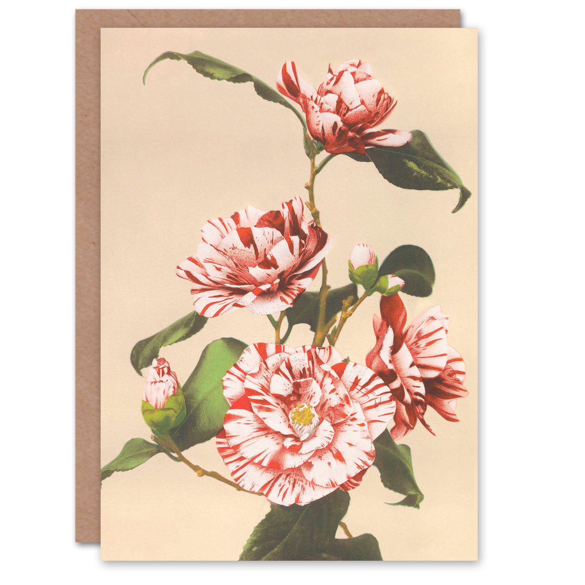 Ogawa Kazumasa Striped Camellias Vintage Japanese Greetings Card