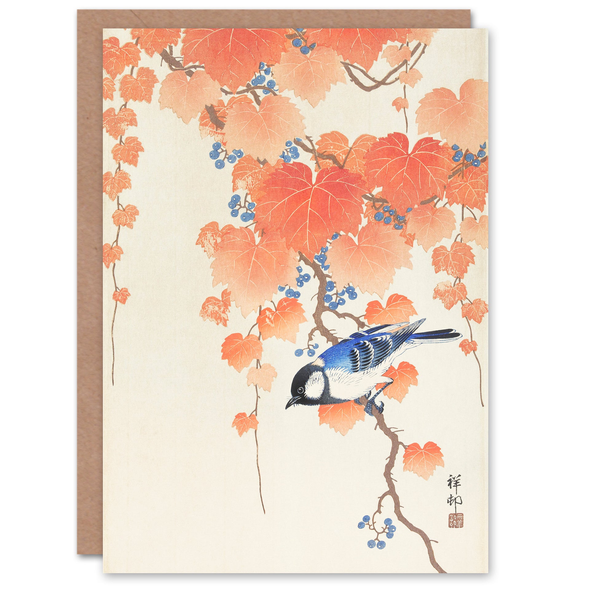 Ohara Koson Japanese Great Tit On Paulownia Branch Greetings Card