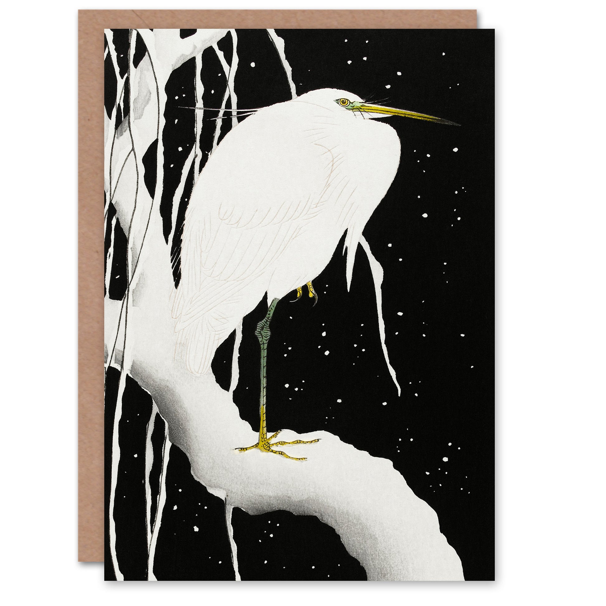 Ohara Koson Japanese Heron In Snow Covered Tree Branch Greetings Card