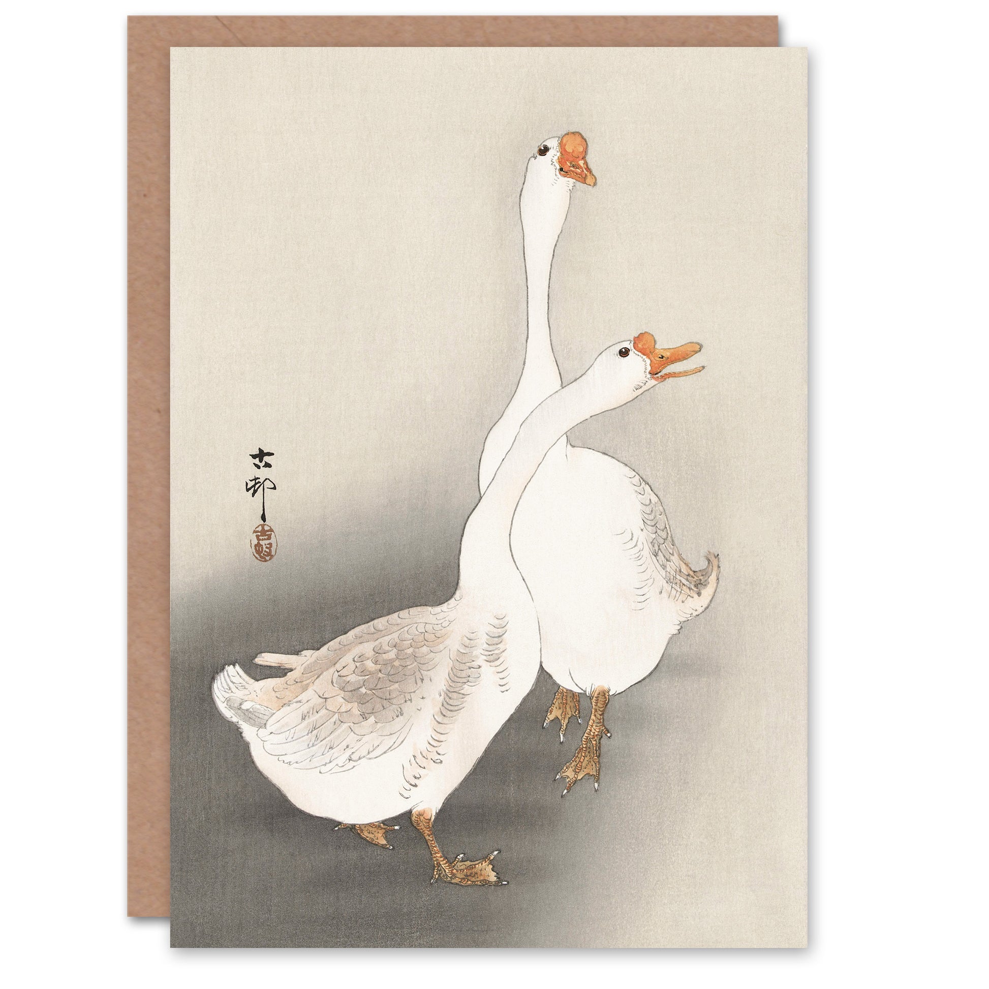 Ohara Koson Japanese Two Geese Vintage Bird Ukiyo-e Greetings Card