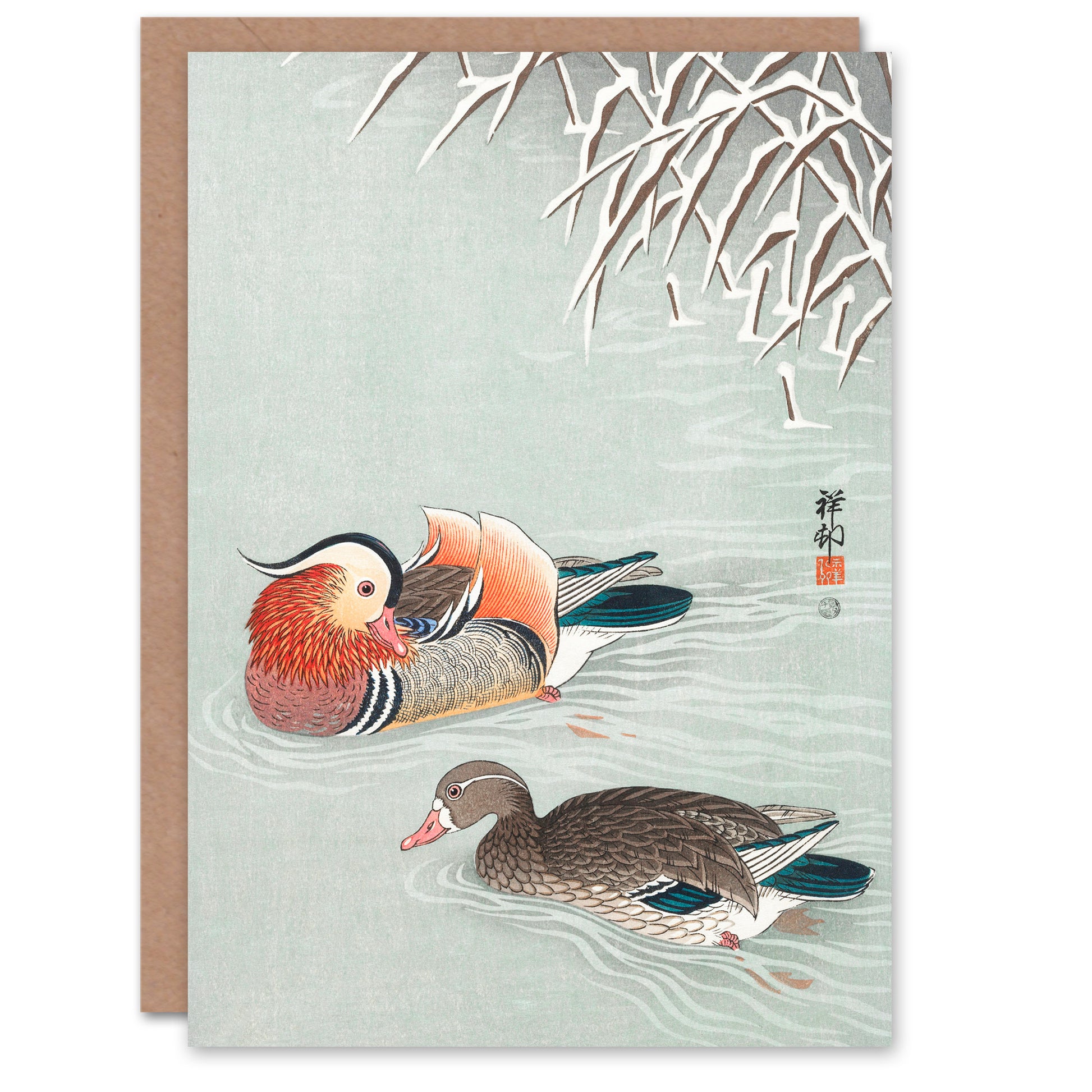 Ohara Koson Japanese Two Mandarin Ducks in Snow Greetings Card