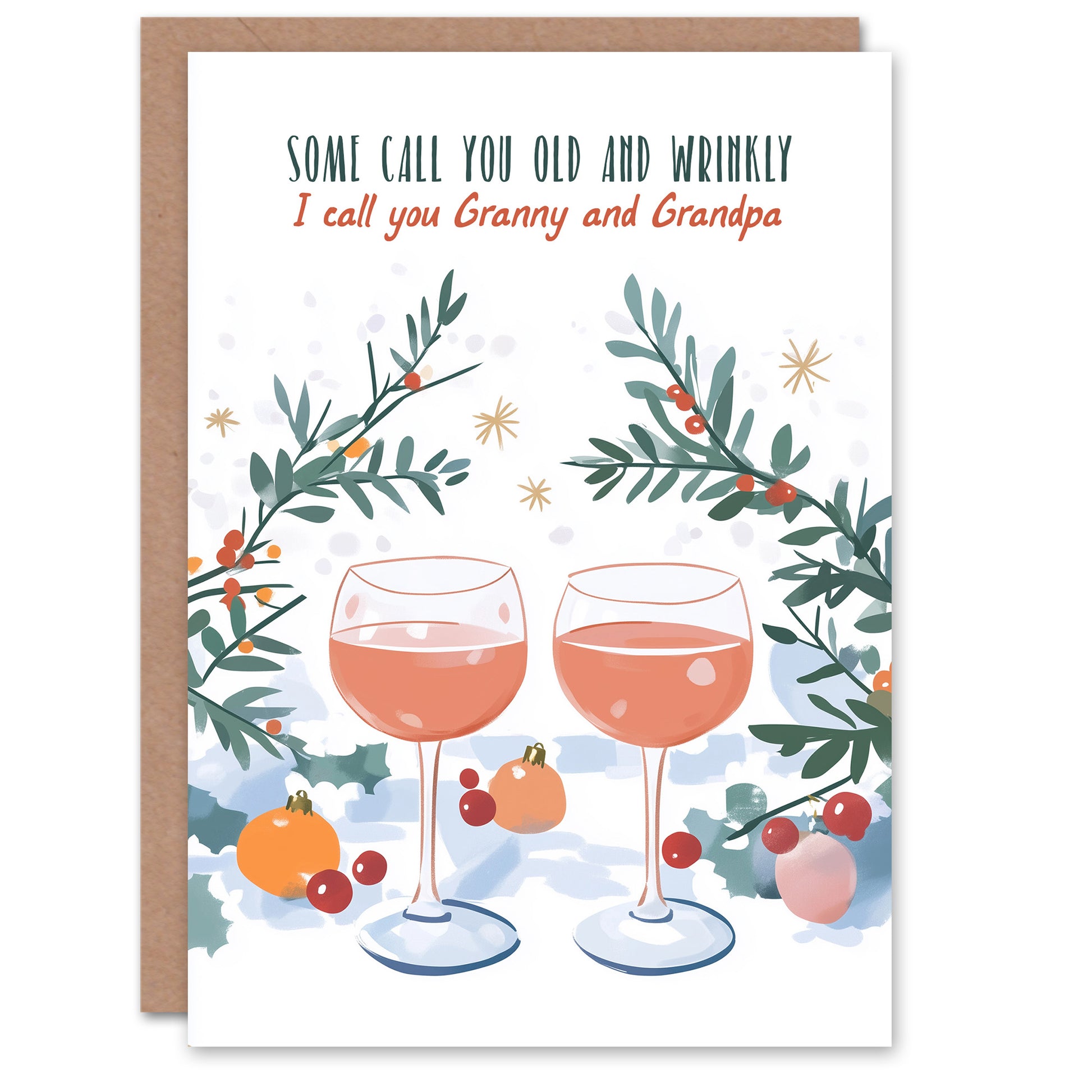 Old Wrinkly Granny Grandpa Wine Lover Funny Christmas Card