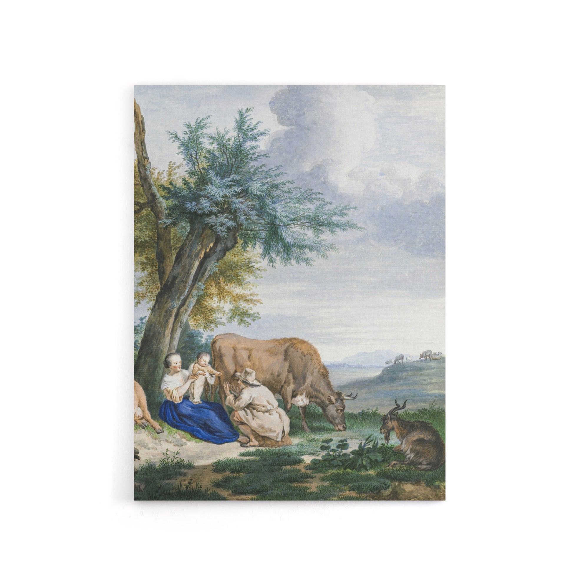 Peasant Family and cattle Landscape Wall Art Print Artwork by Schouman – This pastoral artwork by Schouman depicts a peasant family with cattle in a peaceful landscape, painted with soft realism. A beautiful wall art print and picture that enhances home decor with warmth and tradition. A print that adds countryside calm and timeless grace to your walls.