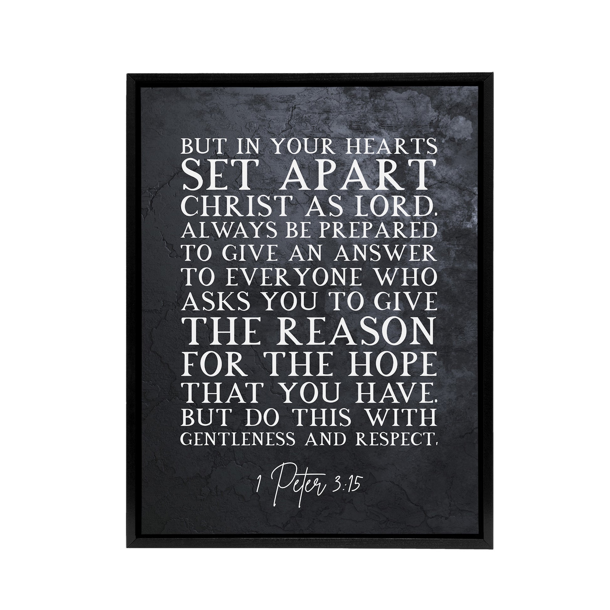 Peter 3 15 Set Apart Christ As Bible Quote Black Framed Canvas Art Print