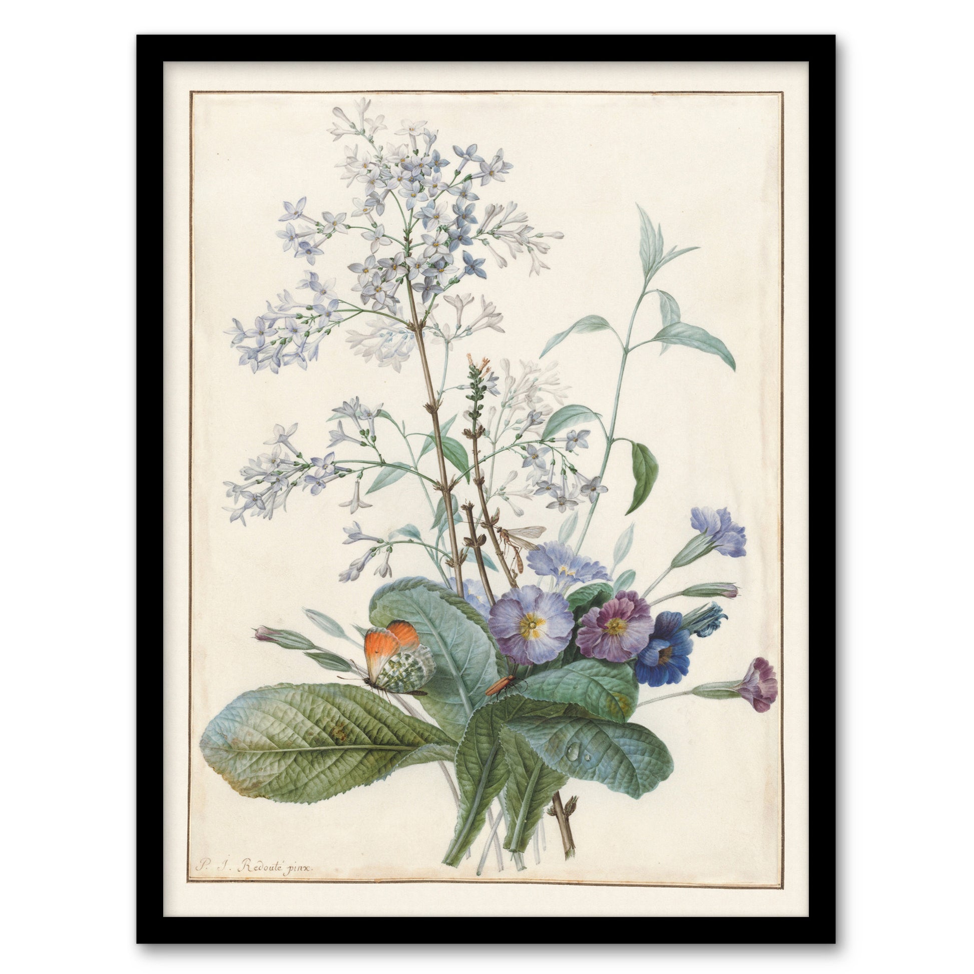 Pierre Joseph Redoute Framed Wall Art Bouquet of Flowers with Insects Home Décor