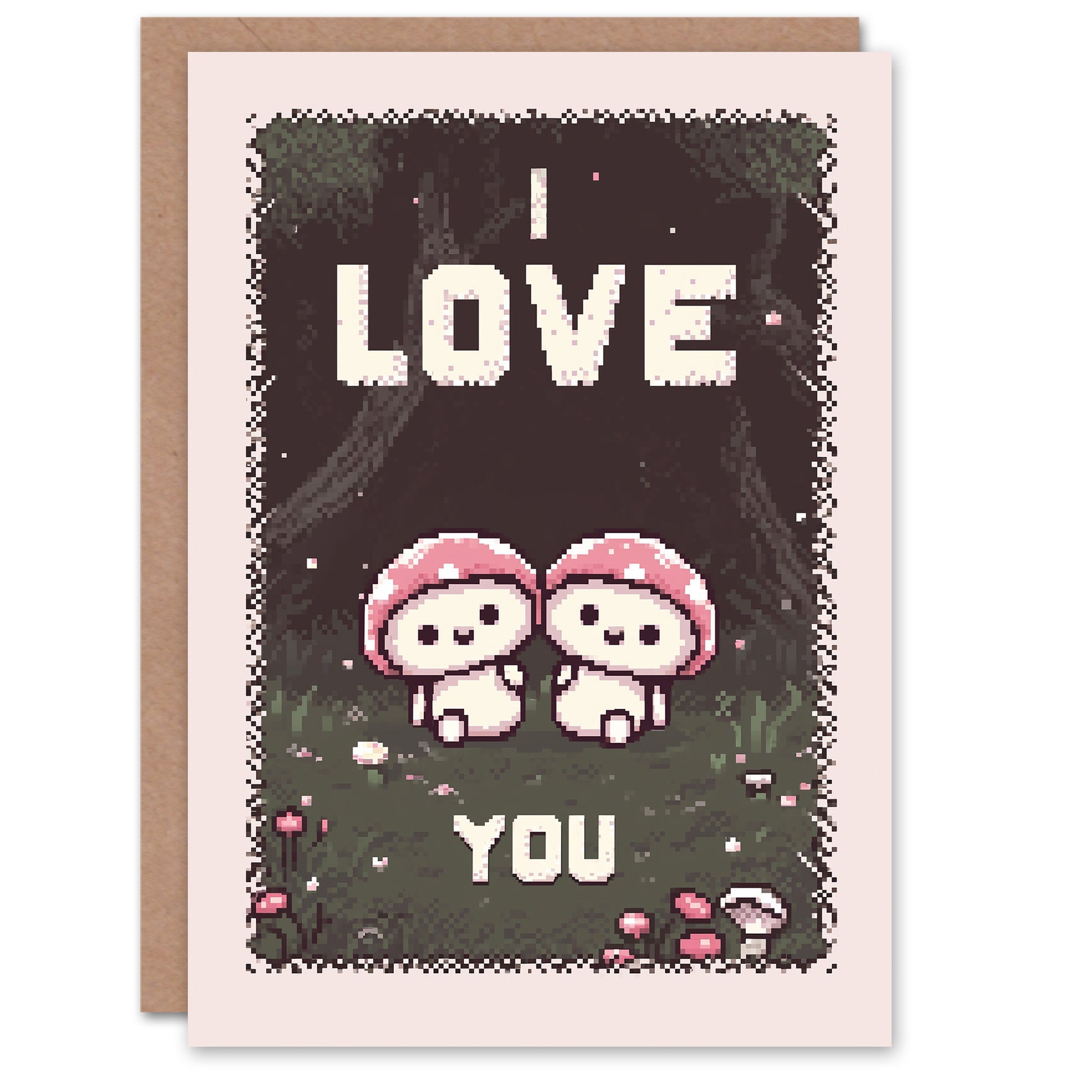 Pixel Art I Love You Mushrooms Cute Gamer Romantic Card