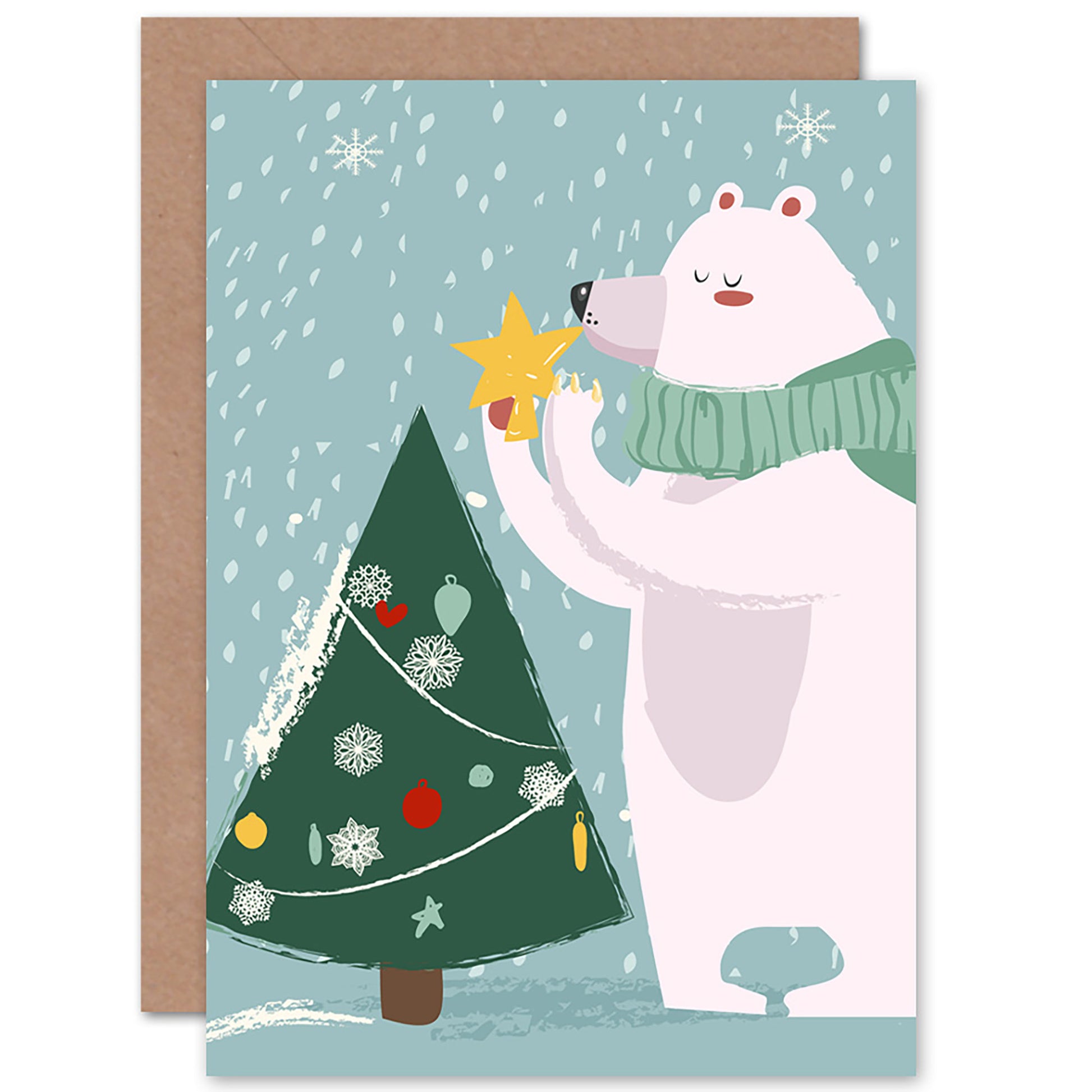 Polar Tree Star Cute Bear Christmas Card