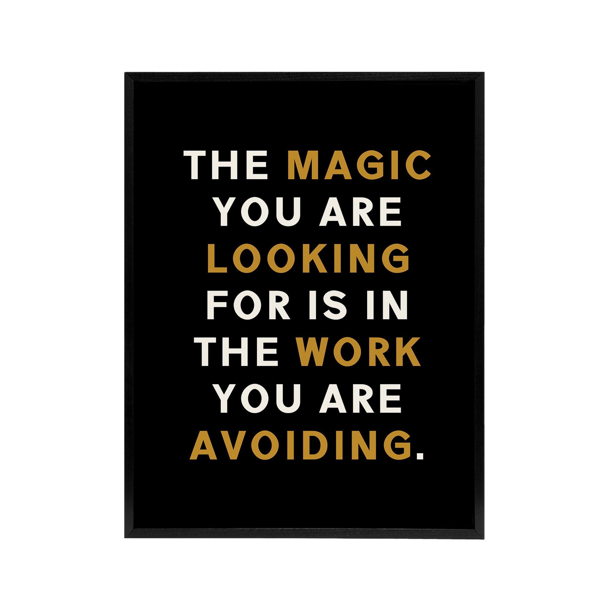 Quote Looking For Magic Work Motivational Black Framed Canvas Art Print