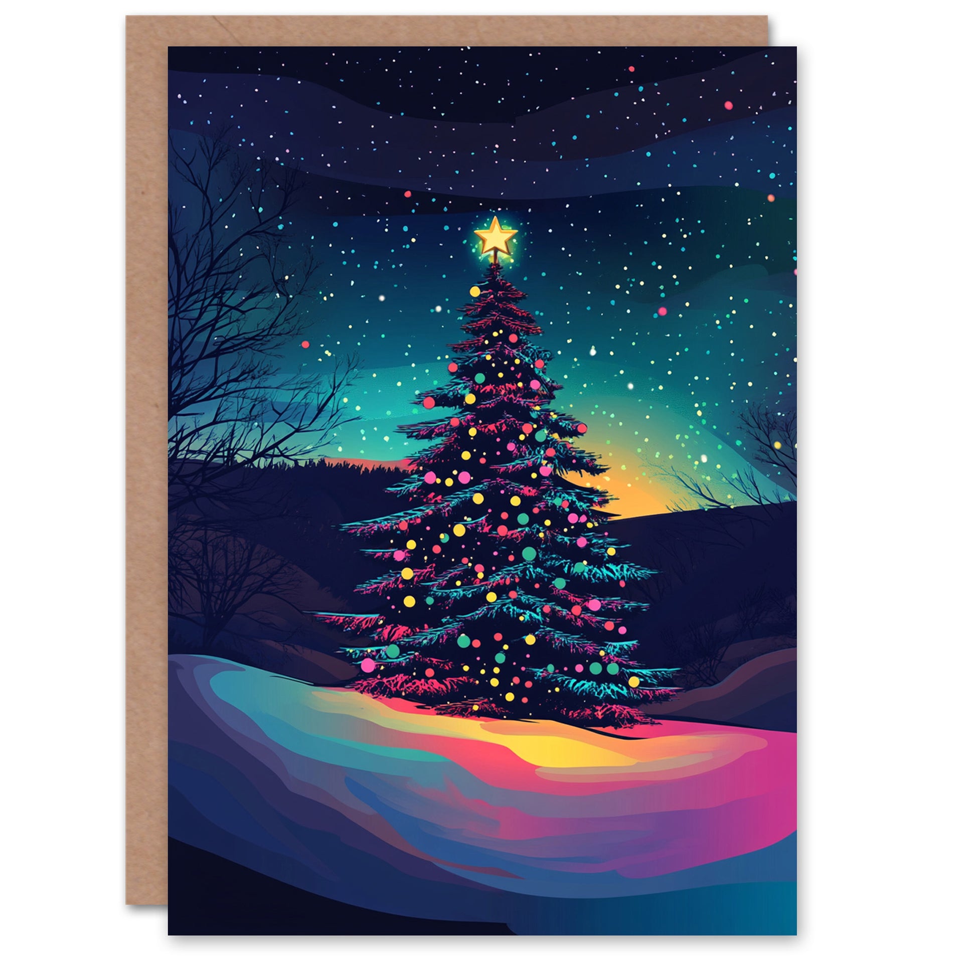 Radiant Decorated Tree Winter Night Festive Christmas Card
