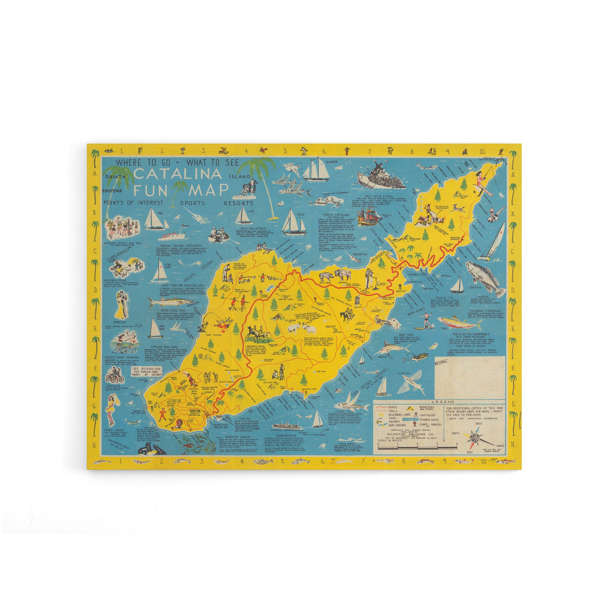 Ramsey 1947 Santa Catalina Island Fun Map Canvas Wall Art Print