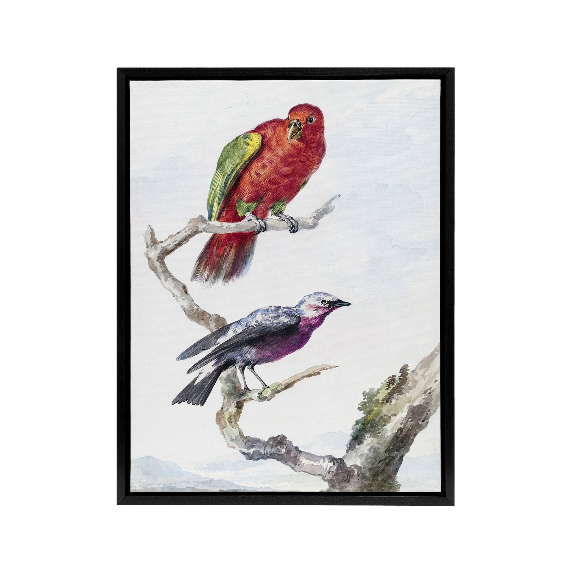 Red Green Parrot and Bird Watercolour Schouman Framed Canvas Wall Art Print